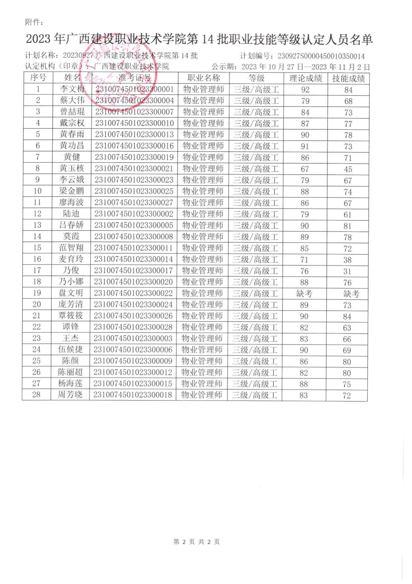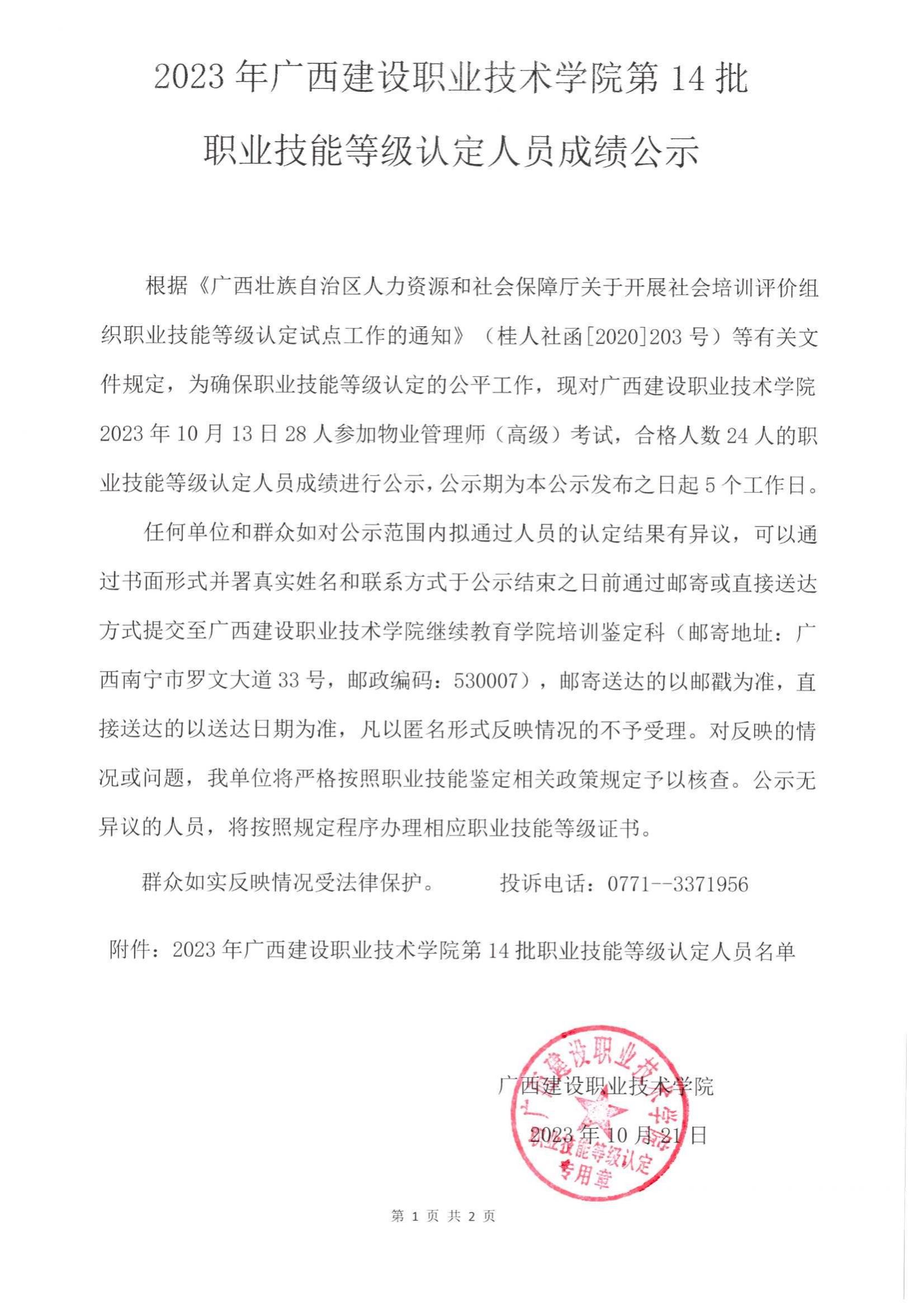 培训信息 当前位置: 首页 >> 培训信息 >> 正文 2023年伟德国际1946源于英国第14批职业技能等级认定人员成绩公示 发布日期:2023-10-27 点击: 附件【2023年伟德国际1946源于英国第14批职业技能等级认定人员成绩公示.pdf】已下载次
