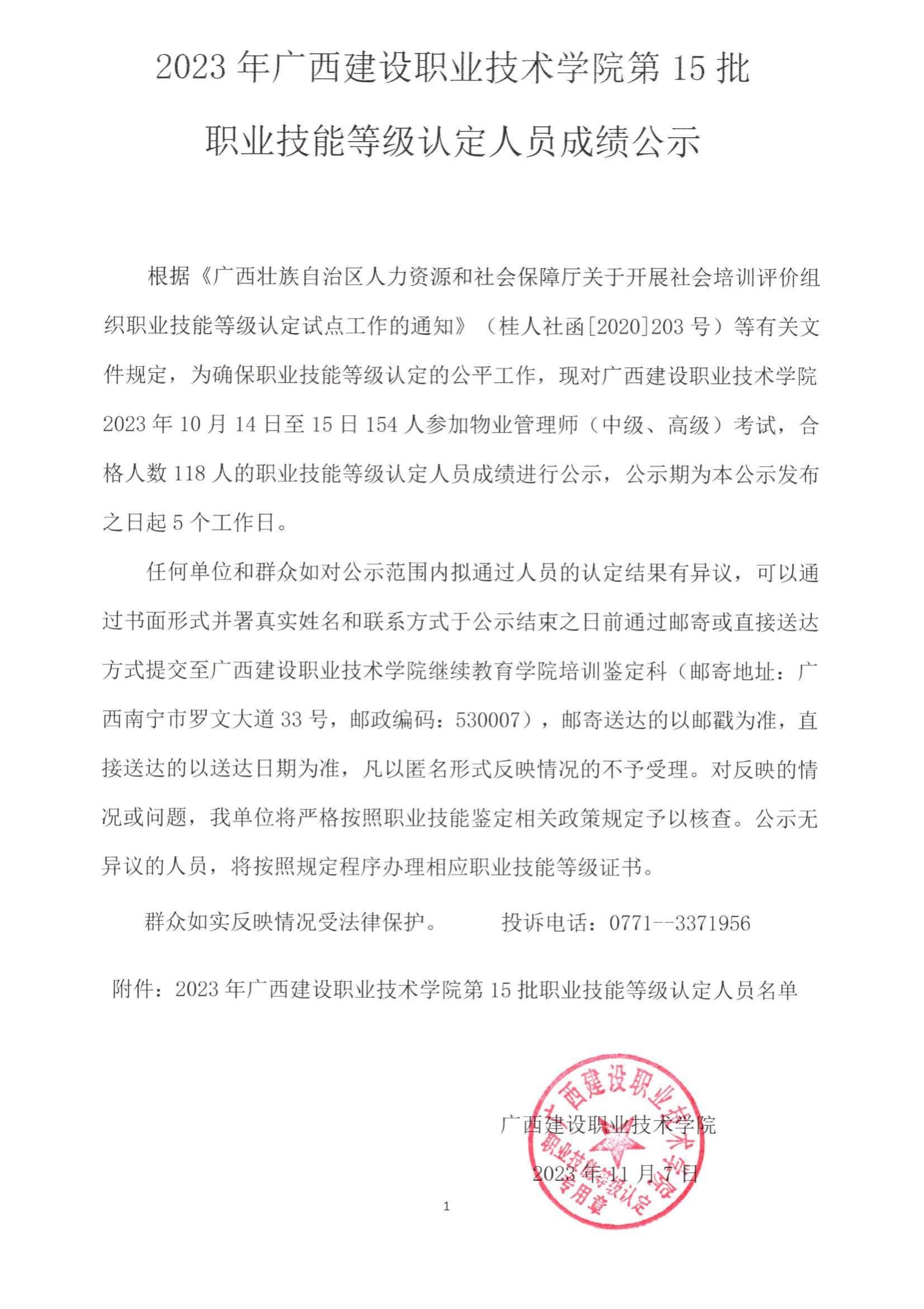培训信息 当前位置: 首页 >> 培训信息 >> 正文 2023年伟德国际1946源于英国第15批职业技能等级认定人员成绩公示 发布日期:2023-11-08 点击: 附件【2023年伟德国际1946源于英国第15批职业技能等级认定人员成绩公示.pdf】已下载次