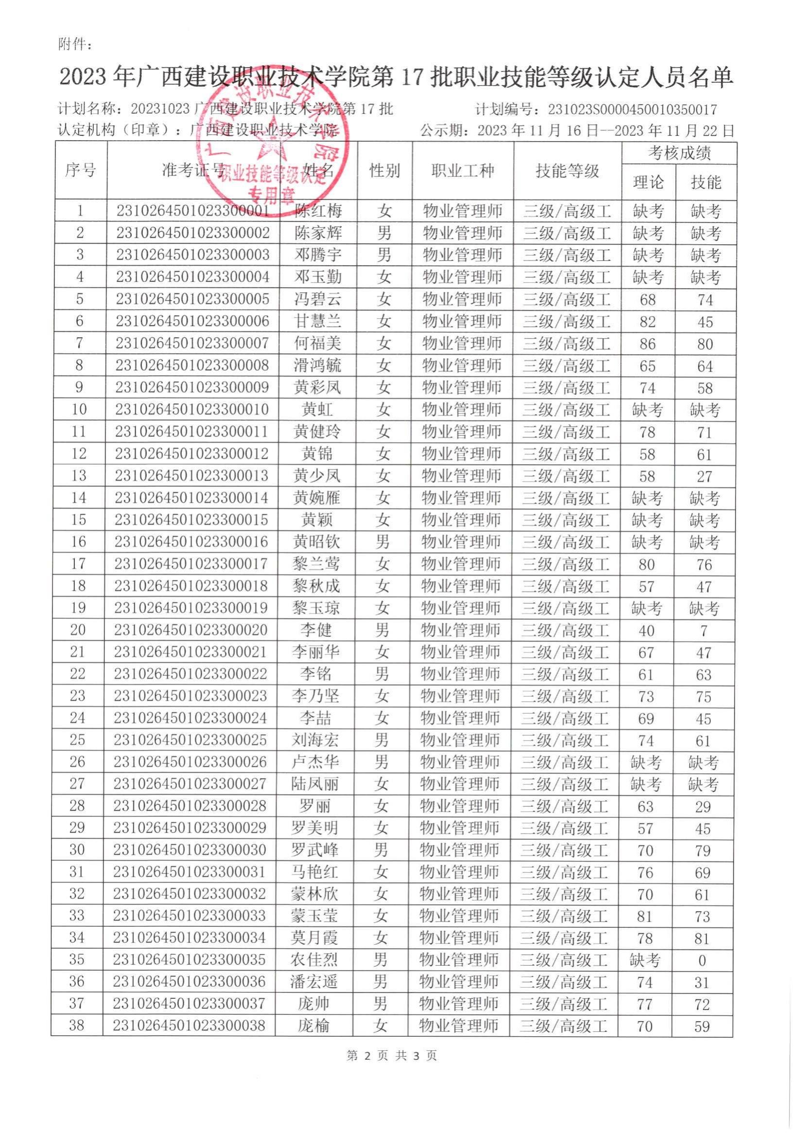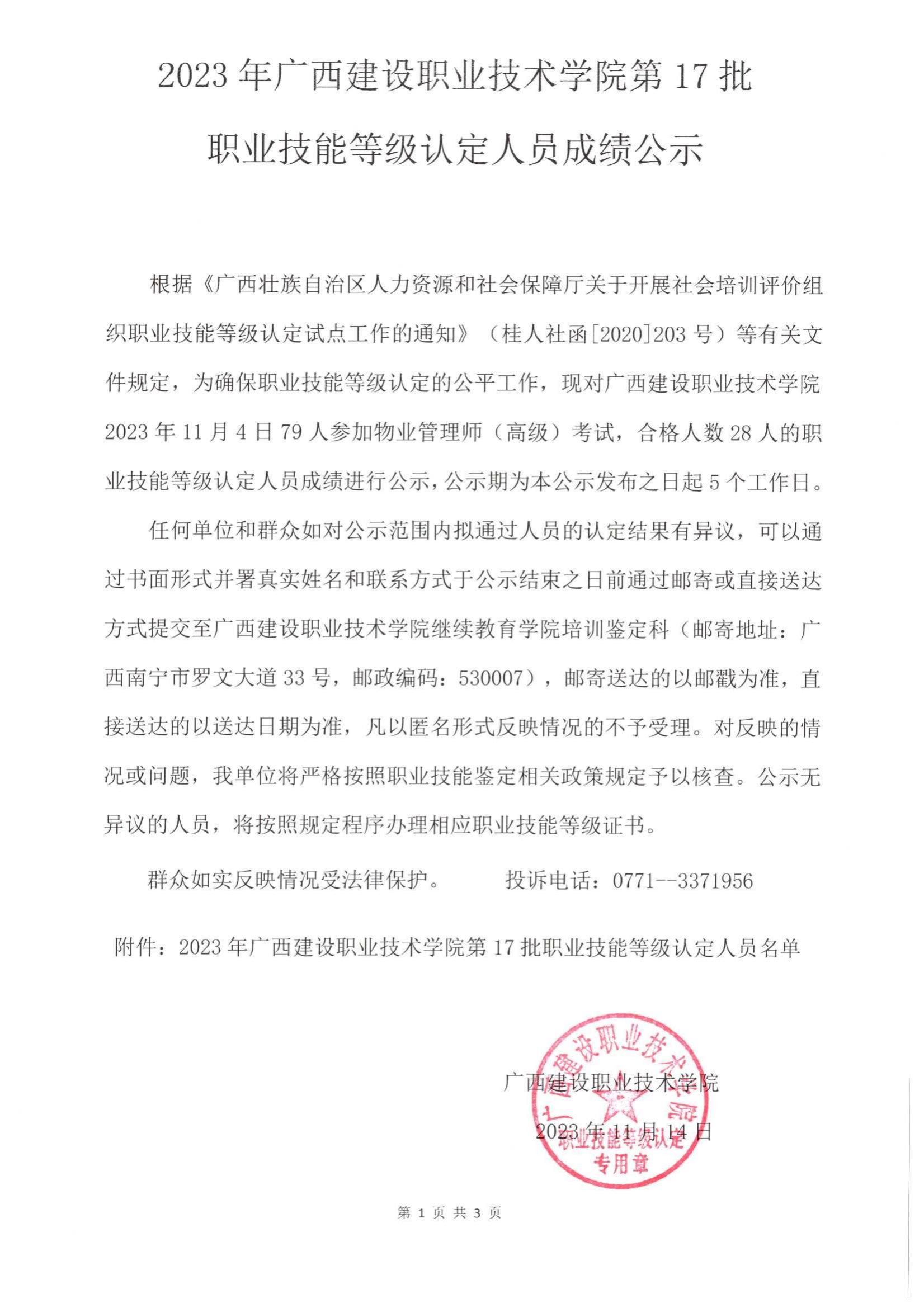 培训信息 当前位置: 首页 >> 培训信息 >> 正文 2023年伟德国际1946源于英国第17批职业技能等级认定人员成绩公示 发布日期:2023-11-16 点击: 附件【2023年伟德国际1946源于英国第17批职业技能等级认定人员成绩公示.pdf】已下载次