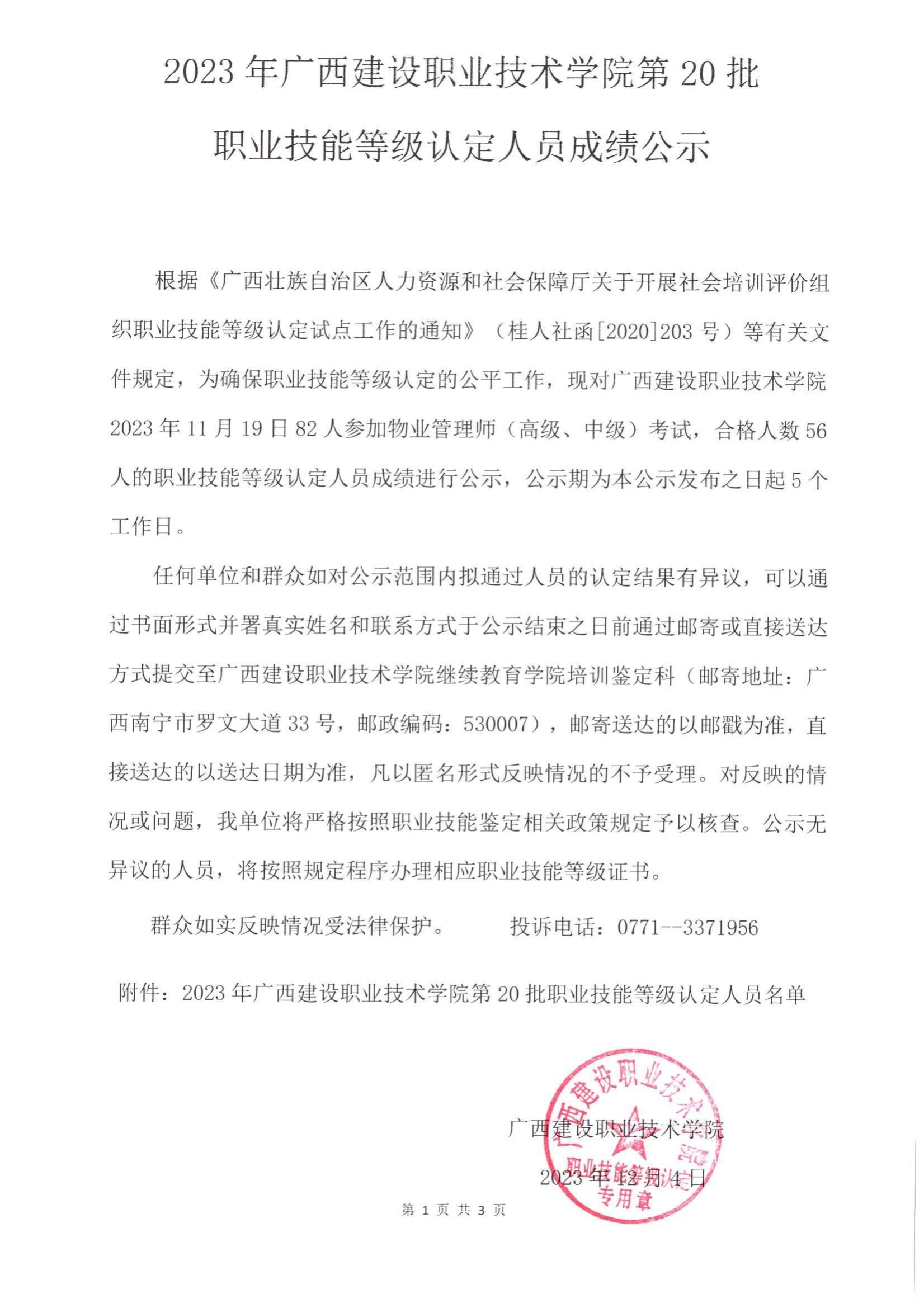 培训信息 当前位置: 首页 >> 培训信息 >> 正文 2023年伟德国际1946源于英国第20批职业技能等级认定人员成绩公示 发布日期:2023-12-05 点击: 附件【2023年伟德国际1946源于英国第20批职业技能等级认定人员成绩公示.pdf】已下载次