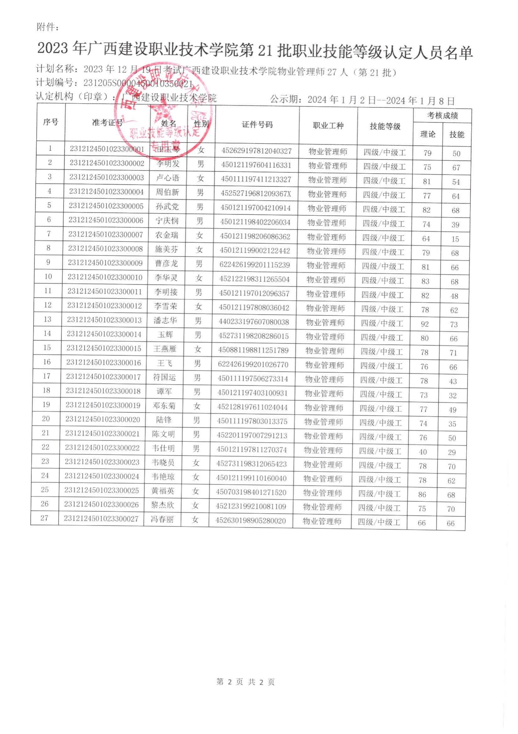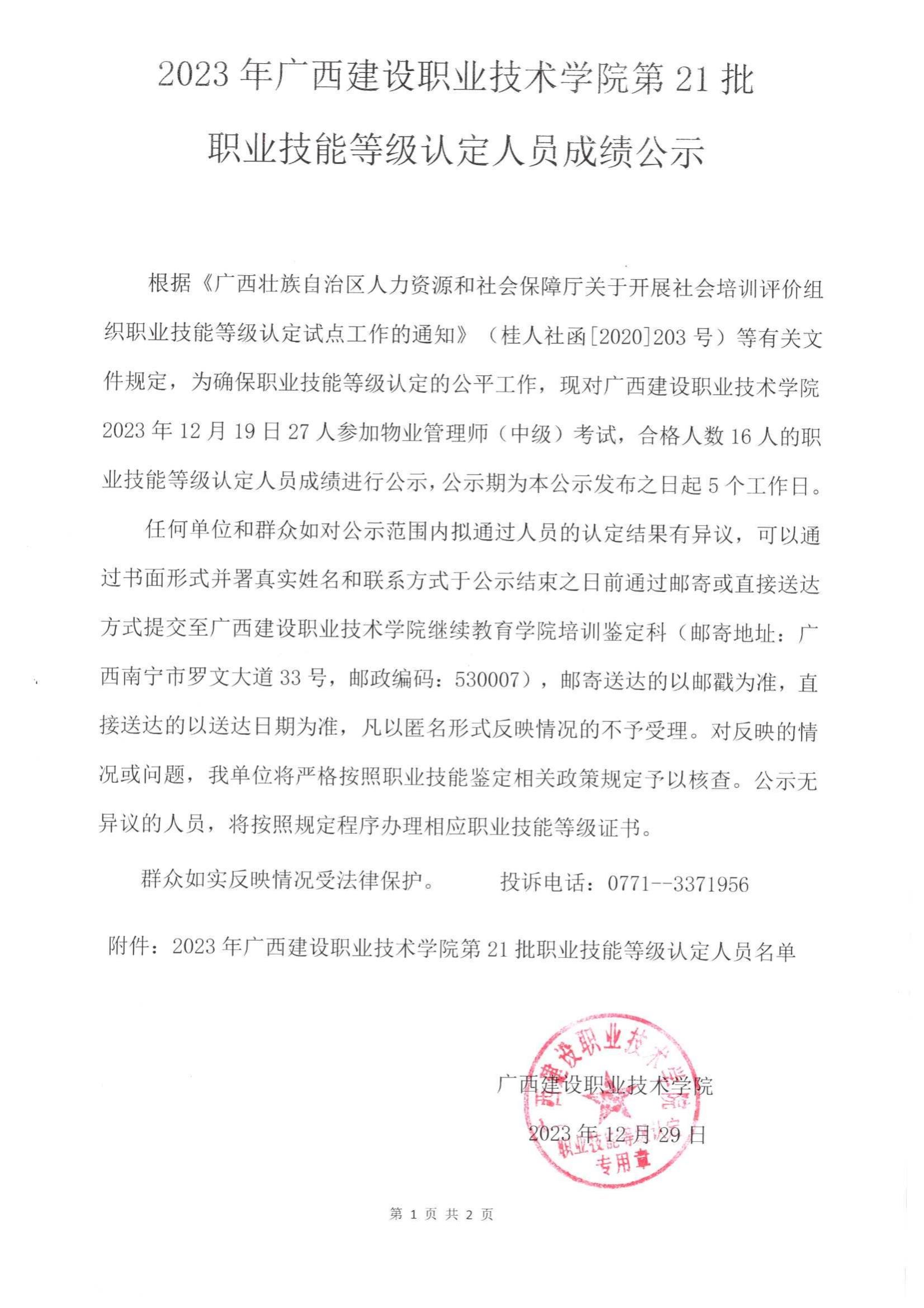 培训信息 当前位置: 首页 >> 培训信息 >> 正文 2023年伟德国际1946源于英国第21批职业技能等级认定人员成绩公示 发布日期:2024-01-02 点击: 附件【2023年伟德国际1946源于英国第21批职业技能等级认定人员成绩公示.pdf】已下载次