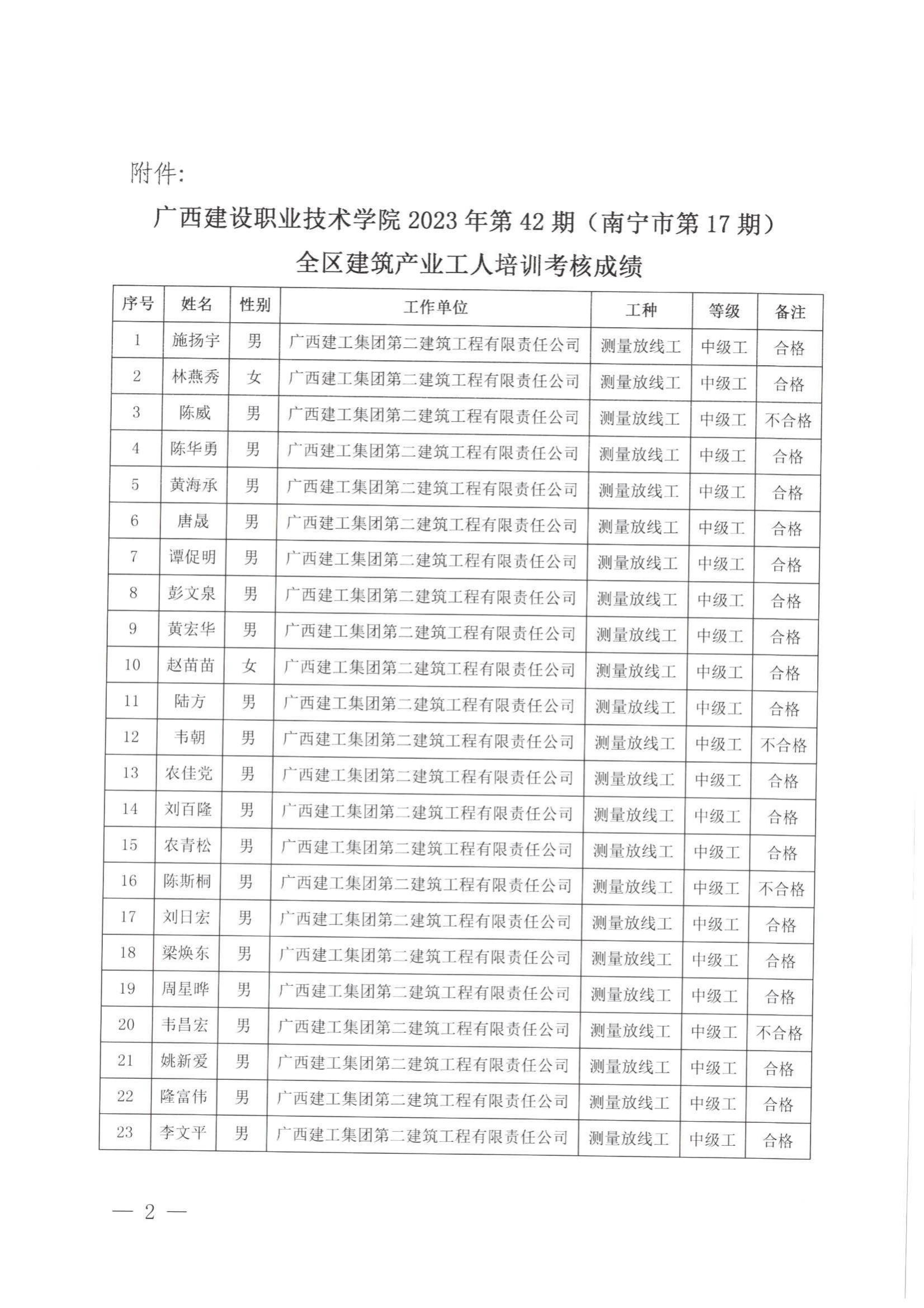 培训信息 当前位置: 首页 >> 培训信息 >> 正文 关于伟德国际1946源于英国2023年全区建筑产业工人第42期(南宁市第17期)培训考核成绩的公示 发布日期:2024-01-05 点击: 附件【关于伟德国际1946源于英国2023年全区建筑产业工人第42期(南宁市第17期)培训考核成绩的公示 .pdf】已下载次