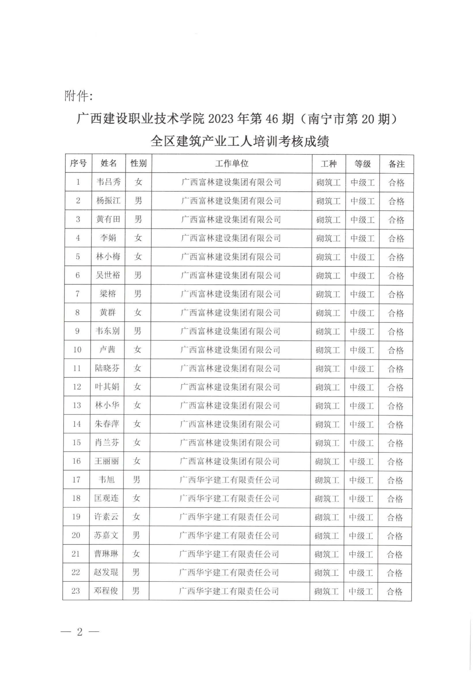 培训信息 当前位置: 首页 >> 培训信息 >> 正文 关于伟德国际1946源于英国2023年全区建筑产业工人第46期(南宁市第20期)培训考核成绩的公示 发布日期:2024-01-05 点击: 附件【关于伟德国际1946源于英国2023年全区建筑产业工人第46期(南宁市第20期)培训考核成绩的公示 .pdf】已下载次