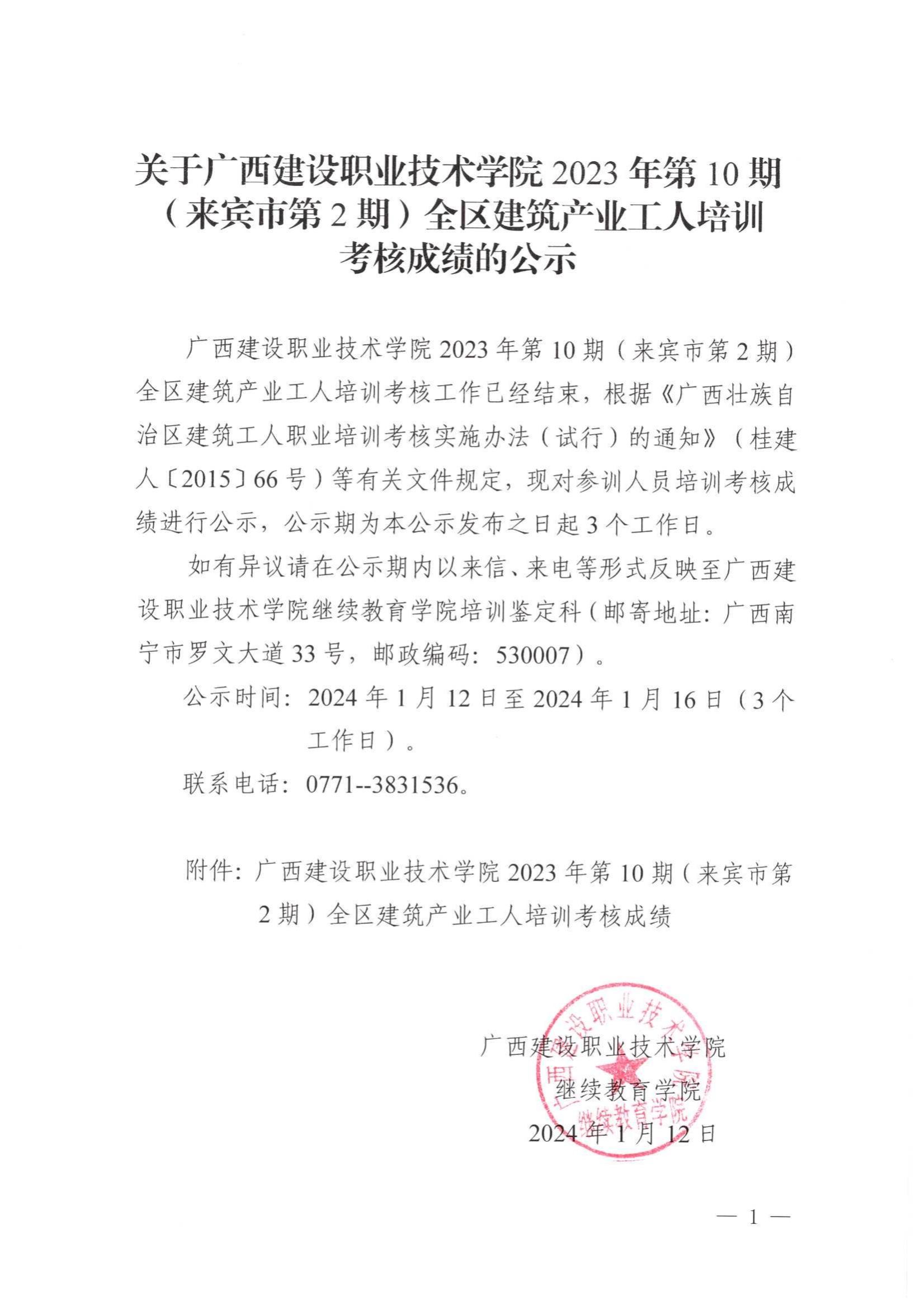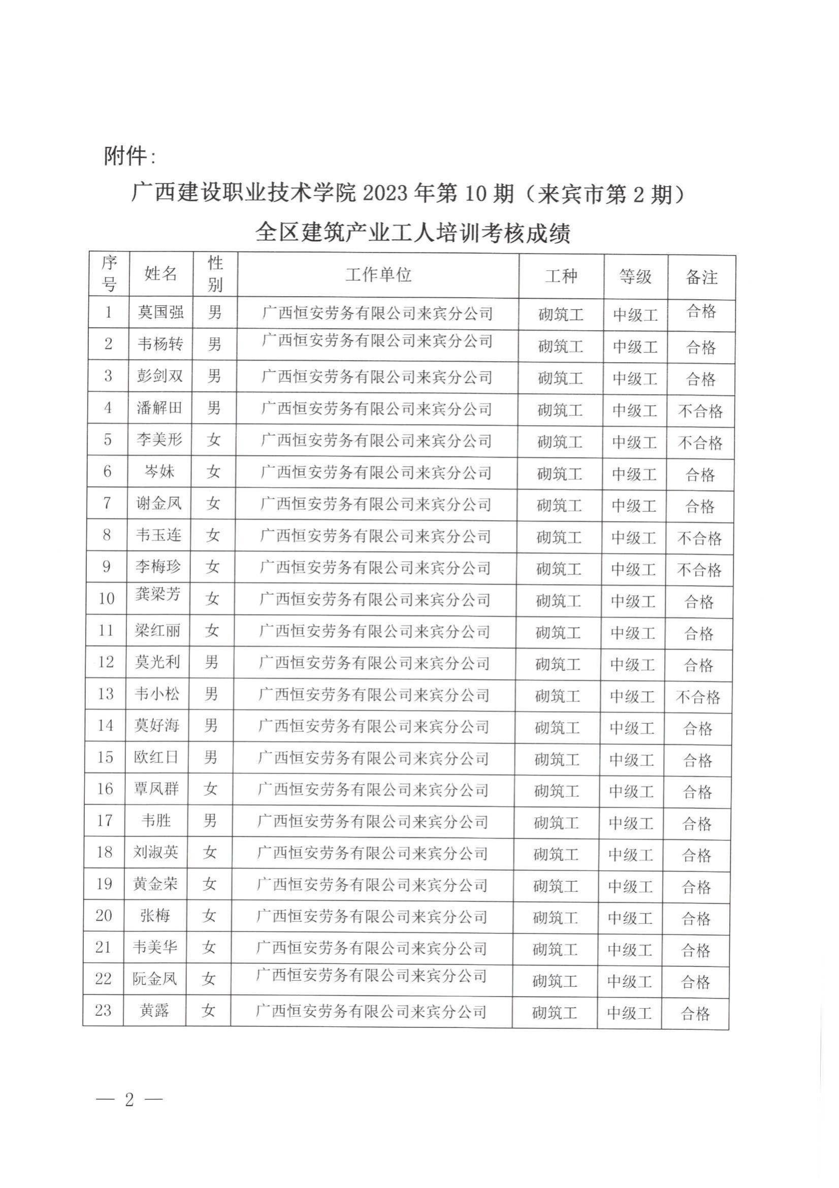 培训信息 当前位置: 首页 >> 培训信息 >> 正文 关于伟德国际1946源于英国2023年全区建筑产业工人第10期(来宾市第2期)培训考核成绩的公示 发布日期:2024-01-12 点击: 附件【关于伟德国际1946源于英国2023年全区建筑产业工人第10期(来宾市第2期)培训考核成绩的公示 .pdf】已下载次