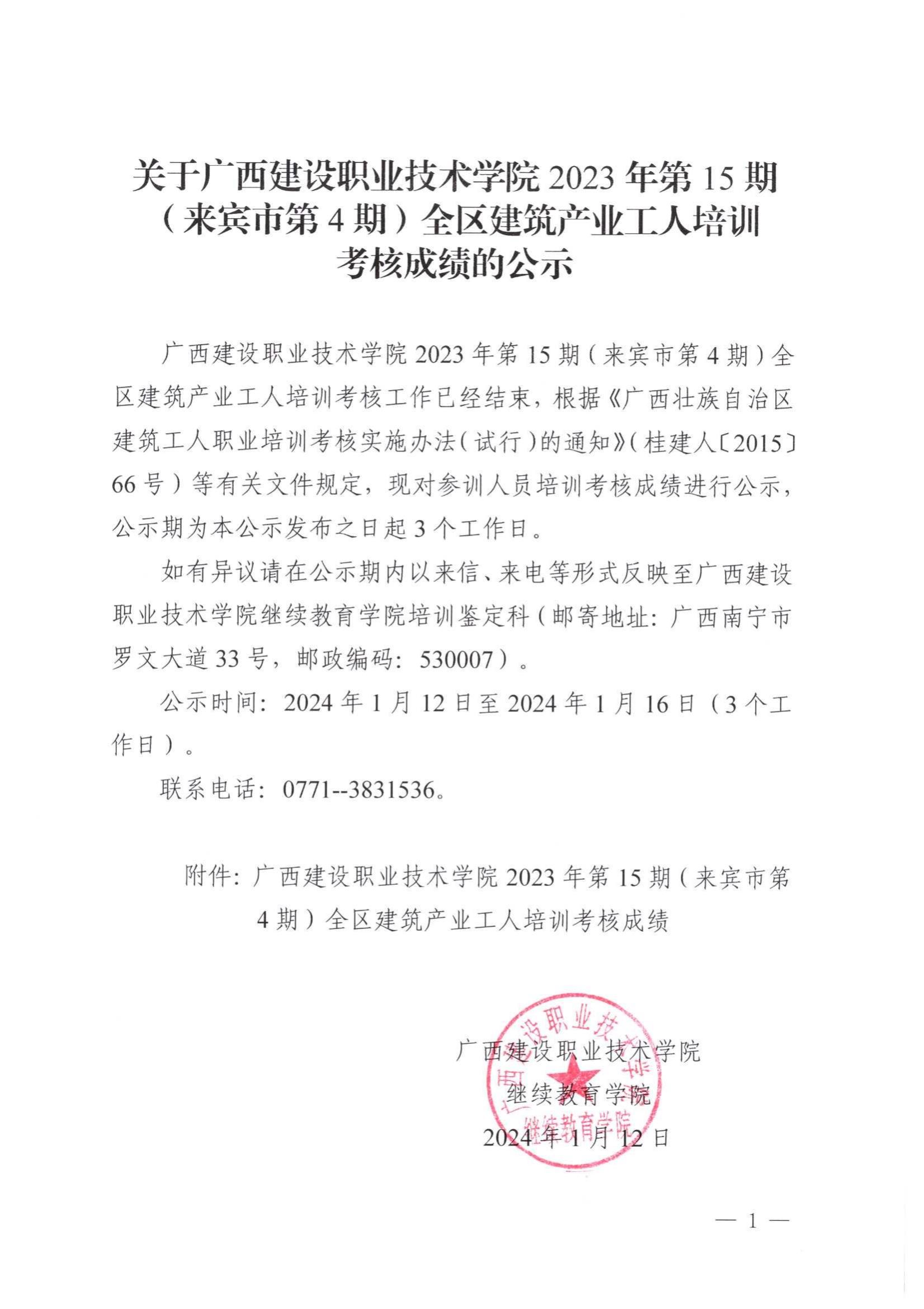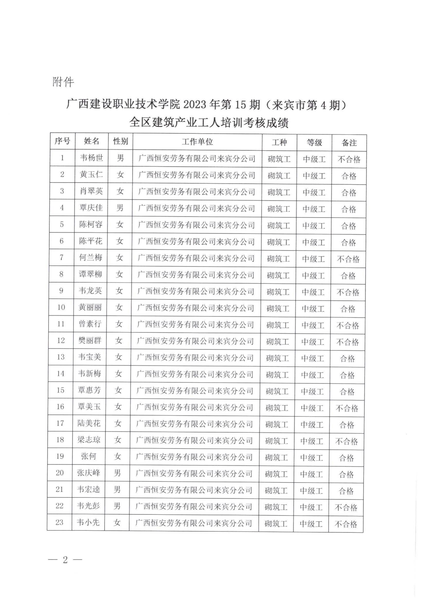 培训信息 当前位置: 首页 >> 培训信息 >> 正文 关于伟德国际1946源于英国2023年全区建筑产业工人第15期(来宾市第4期)培训考核成绩的公示 发布日期:2024-01-12 点击: 附件【关于伟德国际1946源于英国2023年全区建筑产业工人第15期(来宾市第4期)培训考核成绩的公示.pdf】已下载次