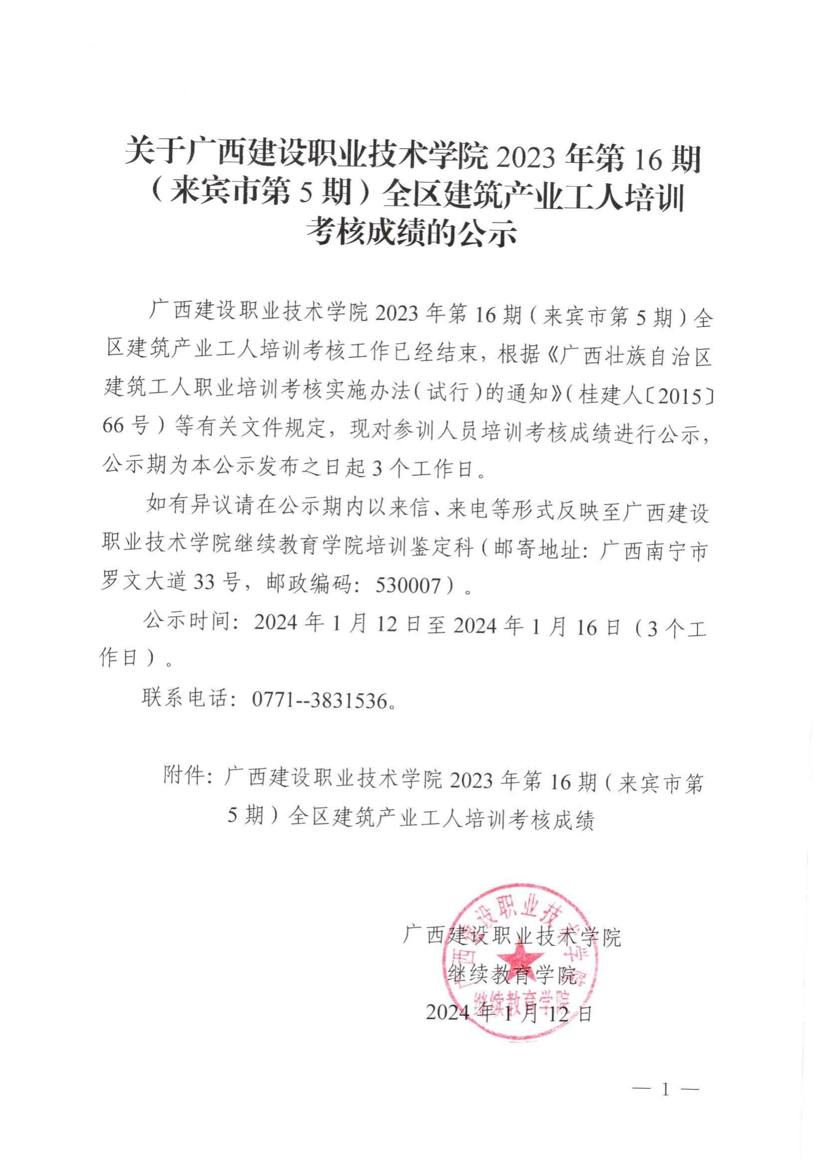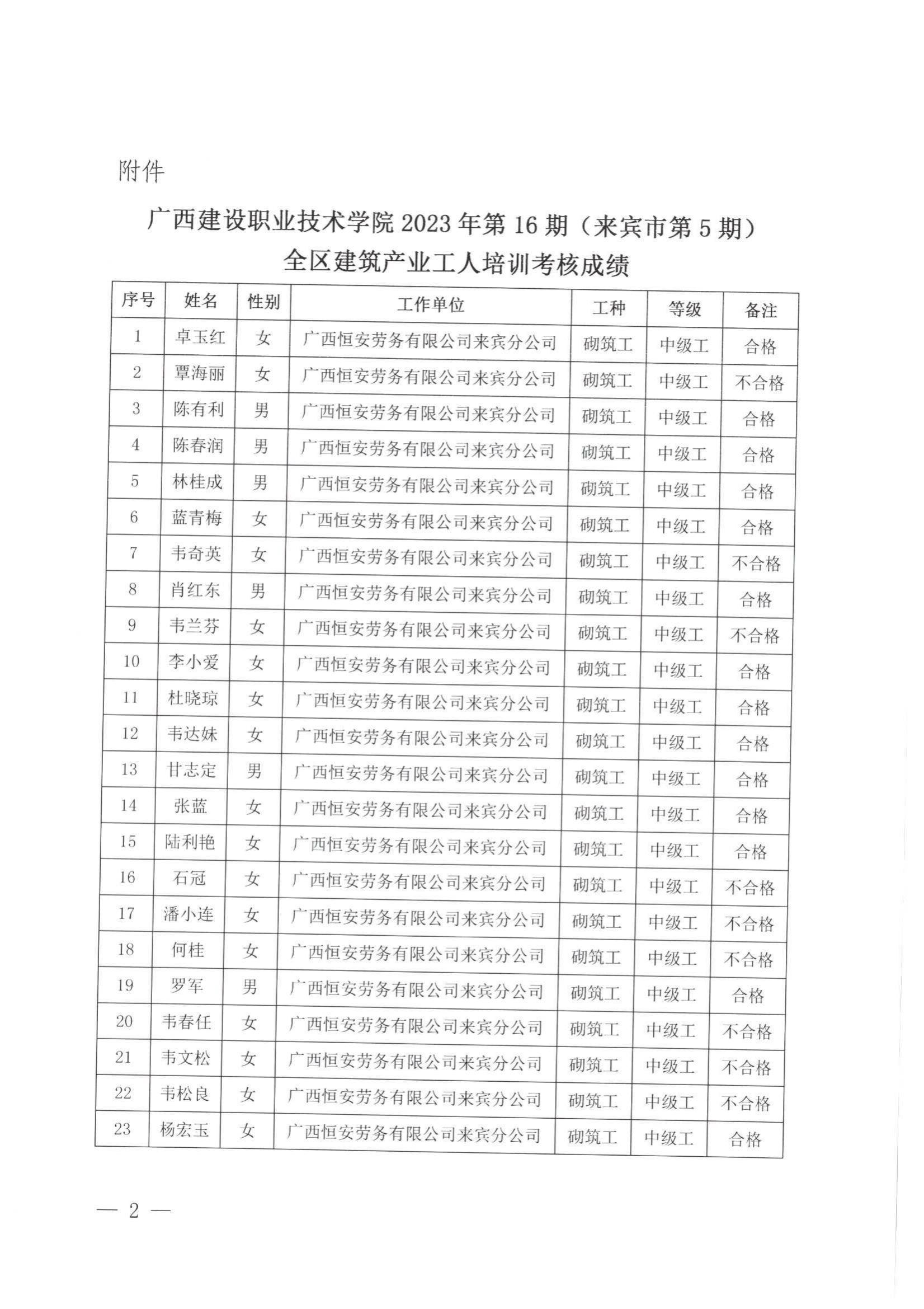 培训信息 当前位置: 首页 >> 培训信息 >> 正文 关于伟德国际1946源于英国2023年全区建筑产业工人第16期(来宾市第5期)培训考核成绩的公示 发布日期:2024-01-12 点击: 附件【关于伟德国际1946源于英国2023年全区建筑产业工人第16期(来宾市第5期)培训考核成绩的公示.pdf】已下载次