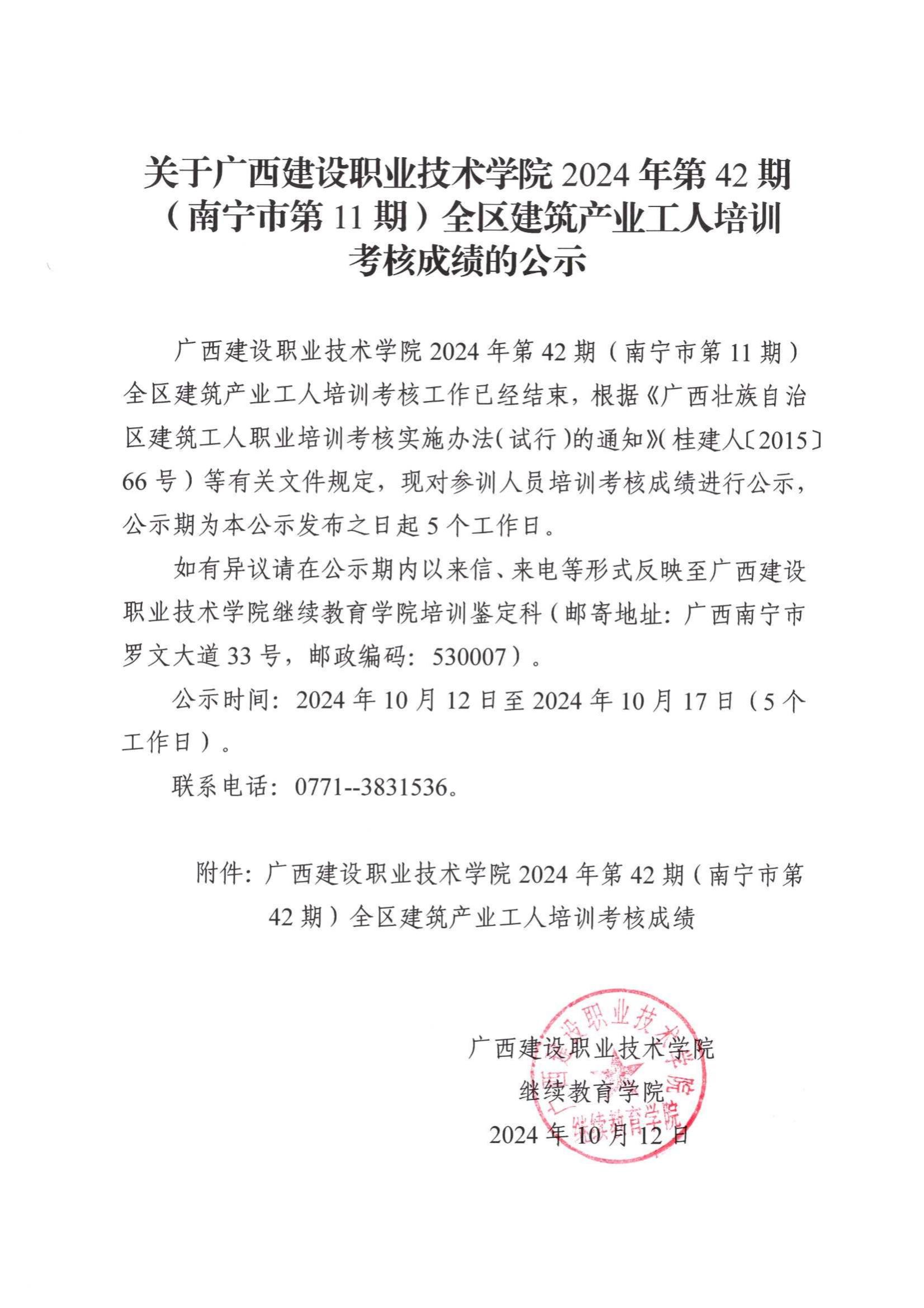 培训信息 当前位置: 首页 >> 培训信息 >> 正文 关于伟德国际1946源于英国2024年全区建筑产业工人第42期(南宁市第11期)培训考核成绩的公示 发布日期:2024-10-12 点击: 附件【关于伟德国际1946源于英国2024年全区建筑产业工人第42期(南宁市第11期)培训考核成绩的公示.pdf】已下载次