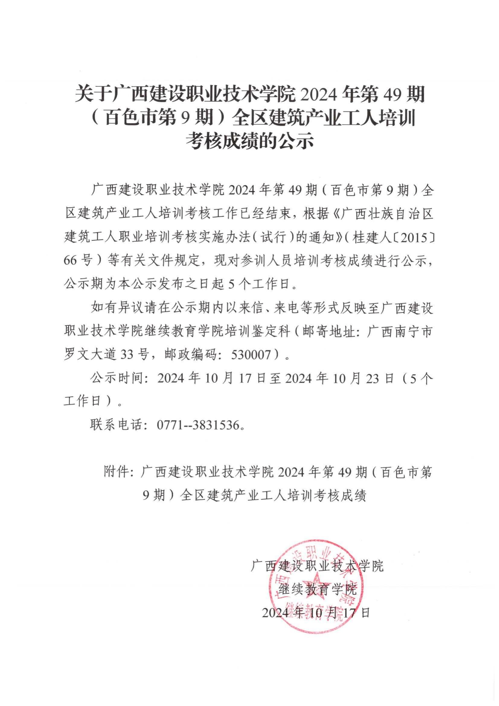 培训信息 当前位置: 首页 >> 培训信息 >> 正文 关于伟德国际1946源于英国2024年全区建筑产业工人第49期(百色市第9期)培训考核成绩的公示 发布日期:2024-10-17 点击: 附件【关于伟德国际1946源于英国2024年全区建筑产业工人第49期(百色市第9期)培训考核成绩的公示.pdf】已下载次
