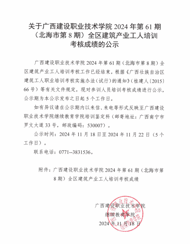 培训信息 当前位置: 首页 >> 培训信息 >> 正文 关于伟德国际1946源于英国2024年全区建筑产业工人第61期(北海市市第8期)培训考核成绩的公示 发布日期:2024-11-18 点击: 附件【关于伟德国际1946源于英国2024年全区建筑产业工人第61期(北海市市第8期)培训考核成绩的公示.pdf】已下载次