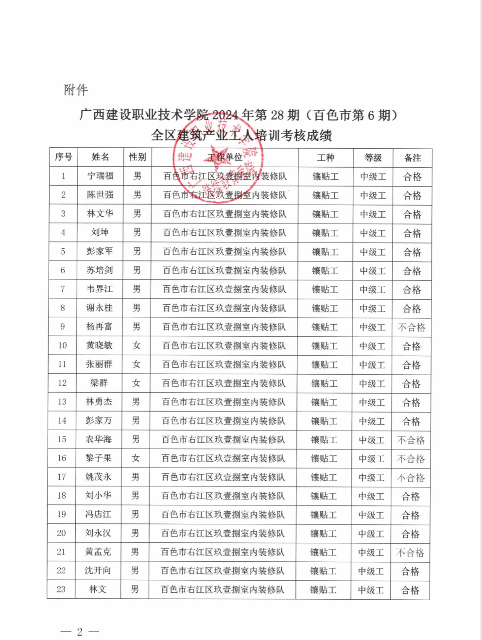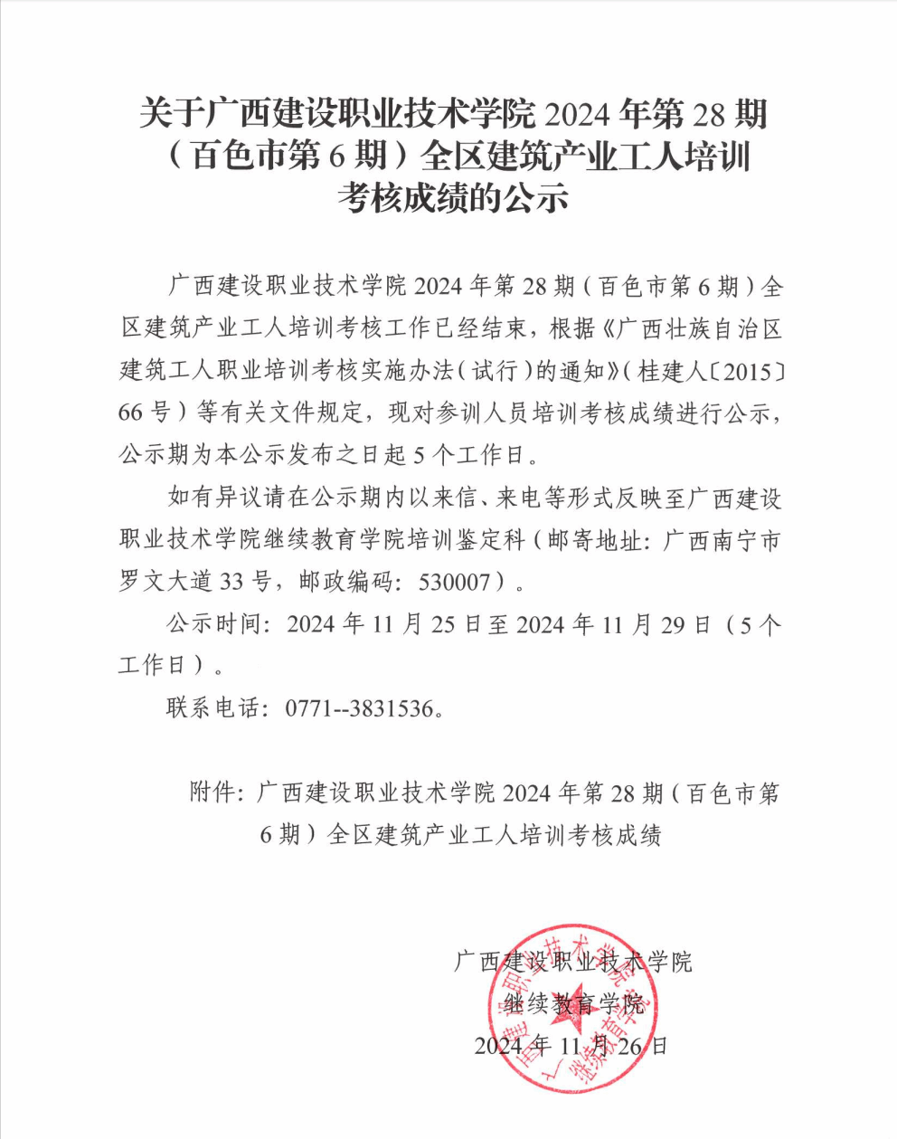 培训信息 当前位置: 首页 >> 培训信息 >> 正文 关于伟德国际1946源于英国2024年全区建筑产业工人第28期(百色市第6期)培训考核成绩的公示 发布日期:2024-11-26 点击: 附件【关于伟德国际1946源于英国2024年全区建筑产业工人第28期(百色市第6期)培训考核成绩的公示.pdf】已下载次