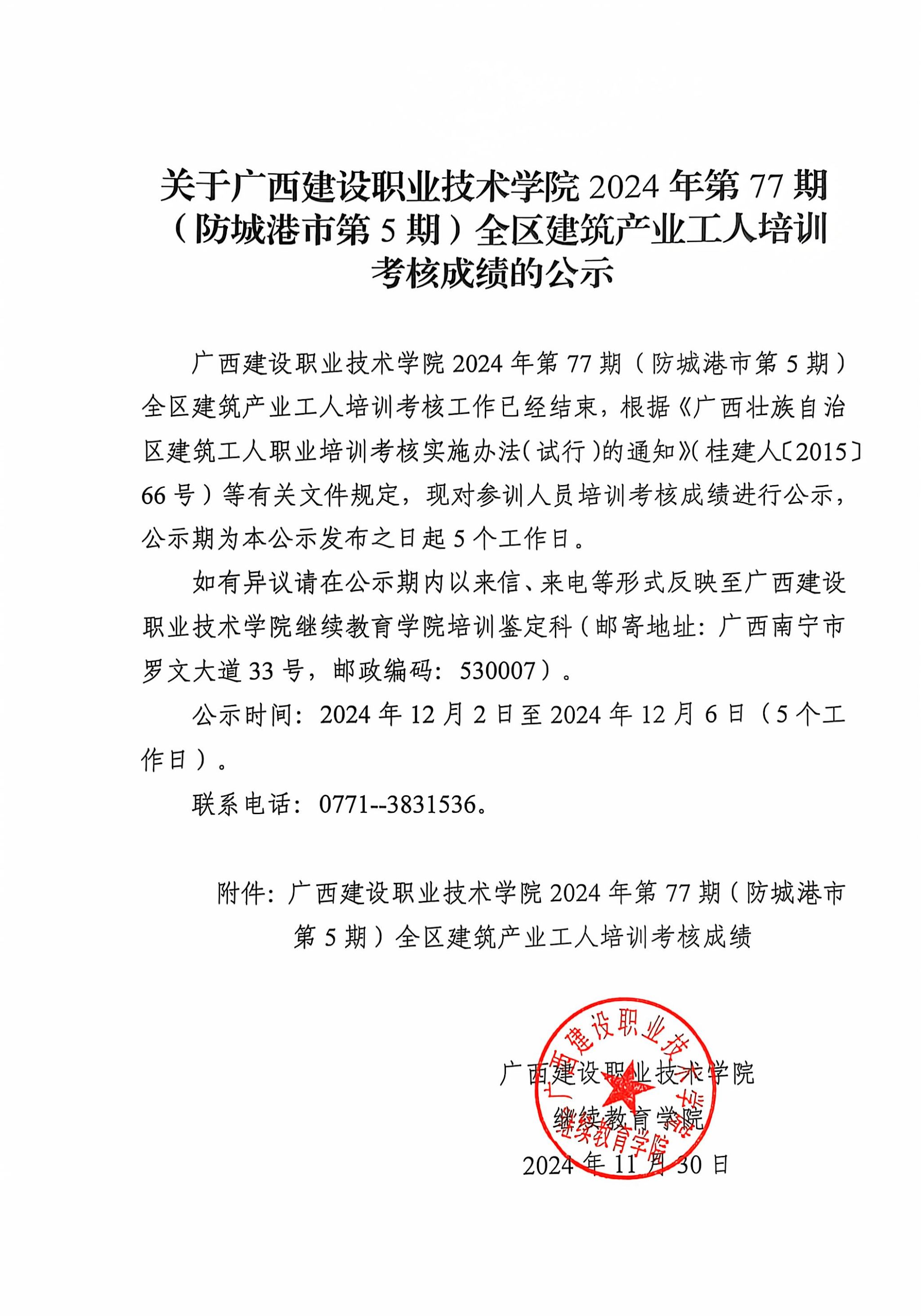 培训信息 当前位置: 首页 >> 培训信息 >> 正文 关于伟德国际1946源于英国2024年全区建筑产业工人第77期(防城港市第5期)培训考核成绩的公示 发布日期:2024-11-30 点击: 附件【关于伟德国际1946源于英国2024年全区建筑产业工人第77期(防城港市第5期)培训考核成绩的公示.pdf】已下载次