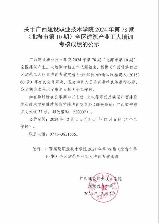 培训信息 当前位置: 首页 >> 培训信息 >> 正文 关于伟德国际1946源于英国2024年全区建筑产业工人第78期(北海市第10期)培训考核成绩的公示 发布日期:2024-12-02 点击: 附件【关于伟德国际1946源于英国2024年全区建筑产业工人第78期(北海市第10期)培训考核成绩的公示.pdf】已下载次