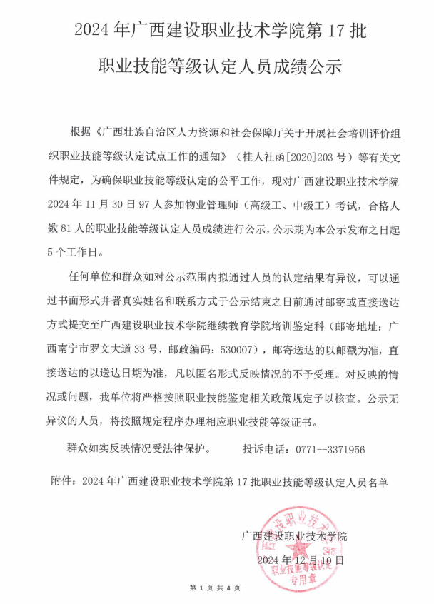培训信息 当前位置: 首页 >> 培训信息 >> 正文 2024年伟德国际1946源于英国第17批职业技能等级认定人员成绩公示 发布日期:2024-12-10 点击: 附件【2024年伟德国际1946源于英国第17批职业技能等级认定人员成绩公示.pdf】已下载次