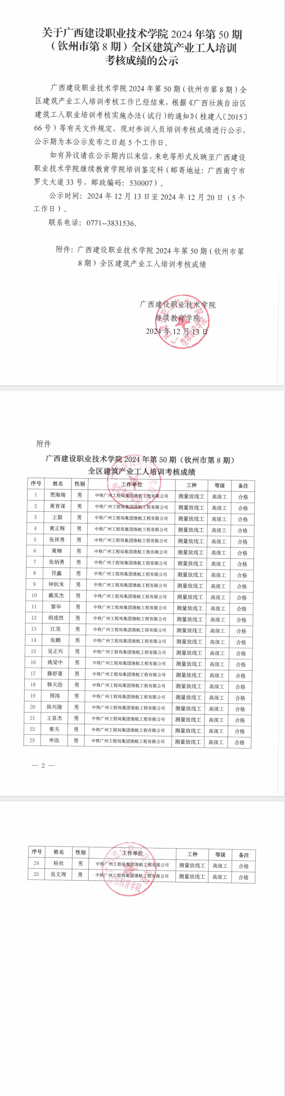 培训信息 当前位置: 首页 >> 培训信息 >> 正文 关于伟德国际1946源于英国2024年第50期(钦州市第8期)全区建筑产业工人培训考核成绩的公示 发布日期:2024-12-13 点击: 附件【关于伟德国际1946源于英国2024年第50期(钦州市第8期)全区建筑产业工人培训考核成绩的公示.pdf】已下载次