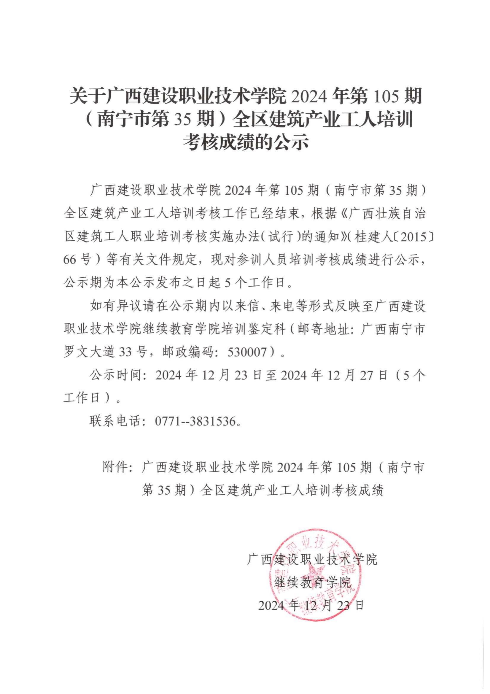 培训信息 当前位置: 首页 >> 培训信息 >> 正文 关于伟德国际1946源于英国2024年第105期(南宁市第35期)全区建筑产业工人培训考核成绩的公示 发布日期:2024-12-24 点击: 附件【关于伟德国际1946源于英国2024年第105期(南宁市第35期)全区建筑产业工人培训考核成绩的公示.pdf】已下载次