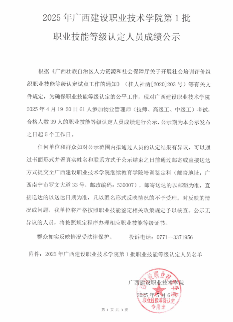 培训信息 当前位置: 首页 >> 培训信息 >> 正文 2025年伟德国际1946源于英国第1批职业技能等级认定人员成绩公示 发布日期:2025-05-07 点击: 附件【2025年伟德国际1946源于英国第1批职业技能等级认定人员成绩公示.pdf】已下载次