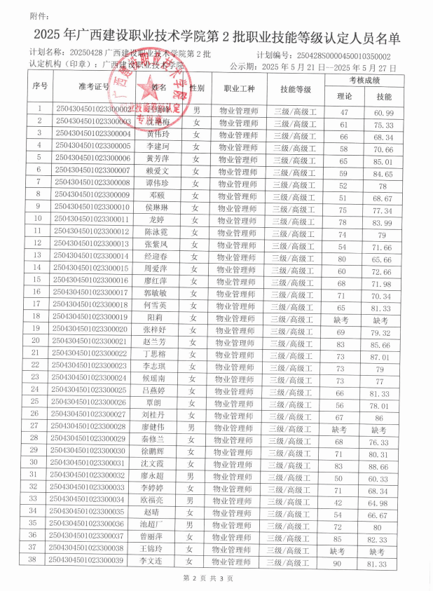培训信息 当前位置: 首页 >> 培训信息 >> 正文 2025年伟德国际1946源于英国第2批职业技能等级认定人员成绩公示 发布日期:2025-05-21 点击: 附件【2025年伟德国际1946源于英国第2批职业技能等级认定人员成绩公示.pdf】已下载次