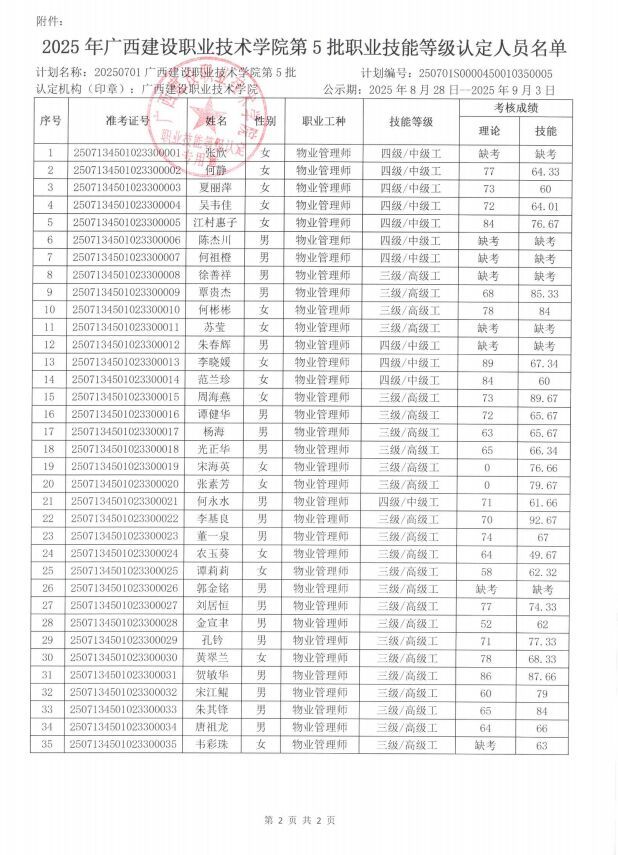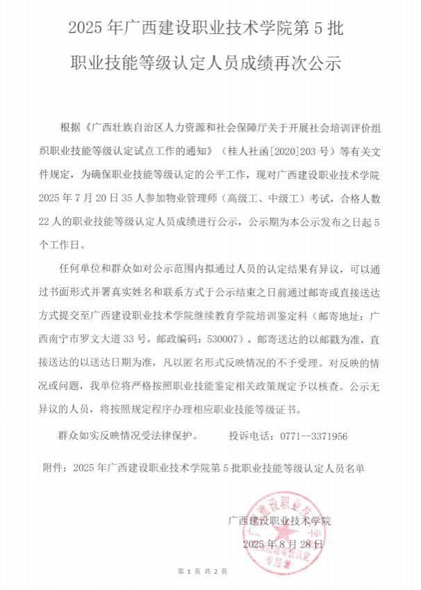 2025年伟德国际1946源于英国第5批职业技能等级认定人员成绩再次公示