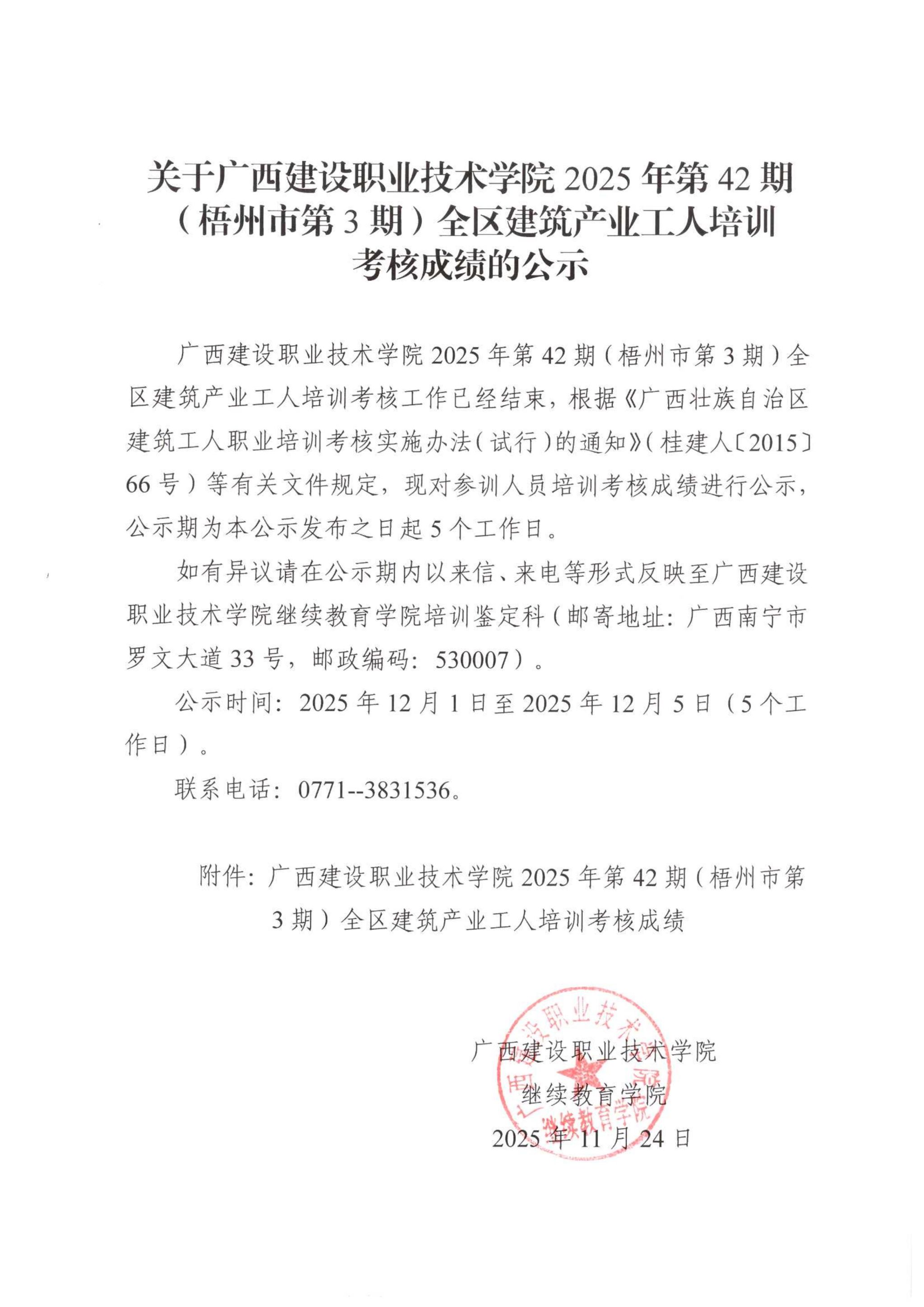 培训信息 当前位置: 首页 >> 培训信息 >> 正文 关于伟德国际1946源于英国2025年全区建筑产业工人第42期(梧州市第3期)培训考核成绩的公示 发布日期:2025-12-01 点击: 附件【关于伟德国际1946源于英国2025年全区建筑产业工人第42期(梧州市第3期)培训考核成绩的公示.pdf】已下载次