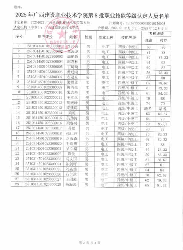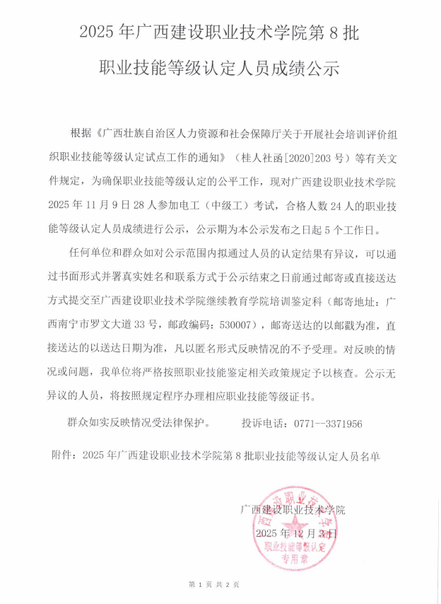 培训信息 当前位置: 首页 >> 培训信息 >> 正文 2025年伟德国际1946源于英国第8批职业技能等级认定人员成绩公示 发布日期:2025-12-03 点击: 附件【2025年伟德国际1946源于英国第8批职业技能等级认定人员成绩公示.pdf】已下载次