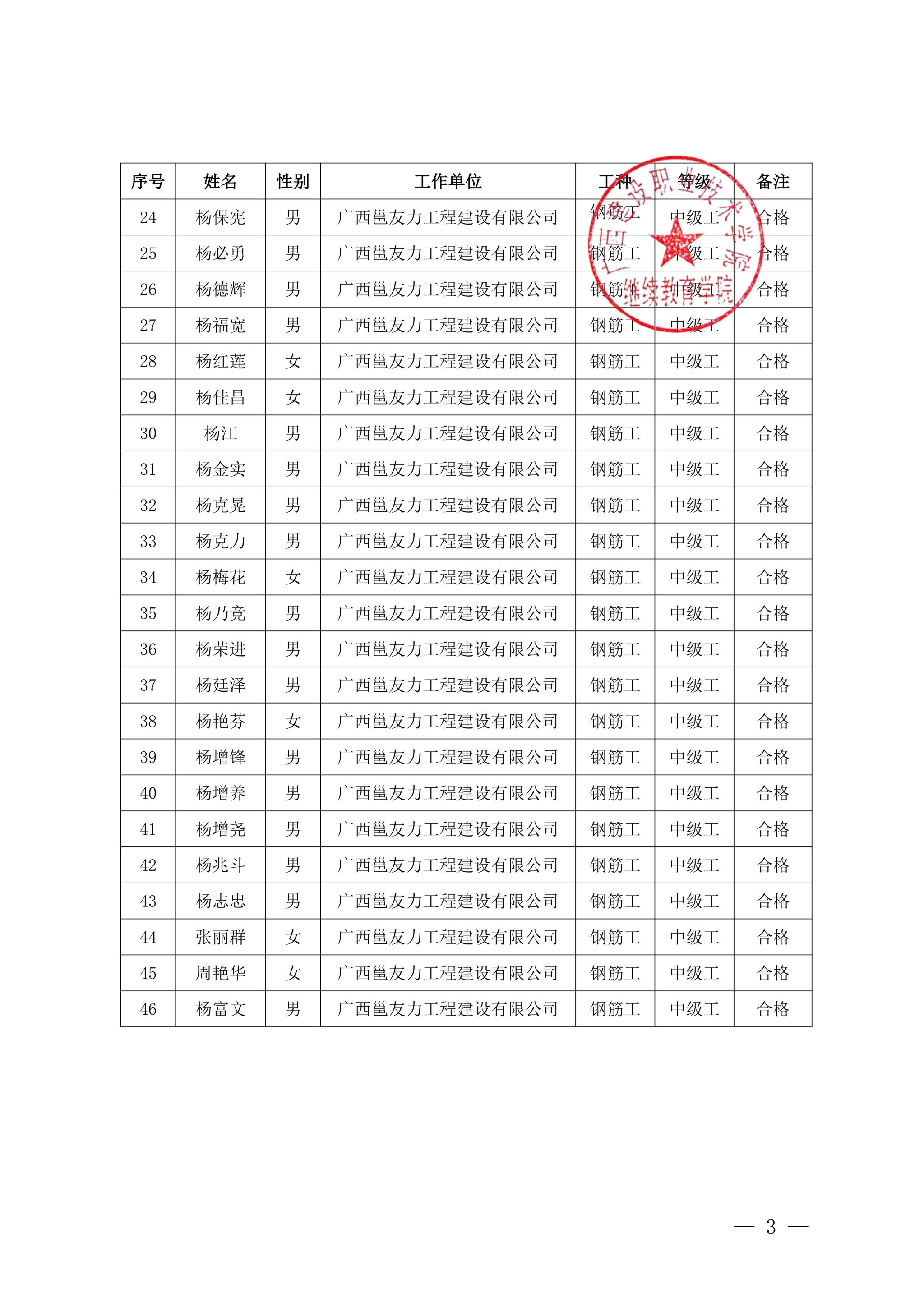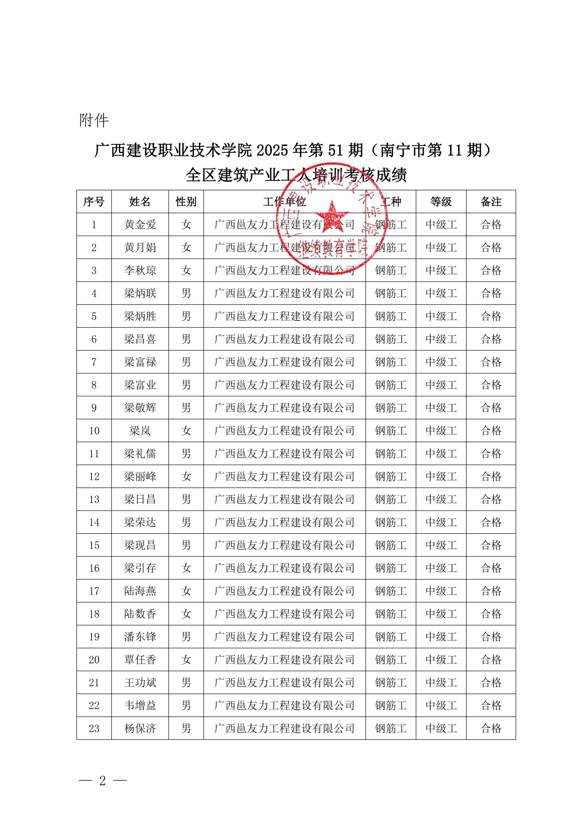 关于伟德国际1946源于英国2025年第51期(南宁市第11期)全区建筑产业工人培训考核成绩的公示