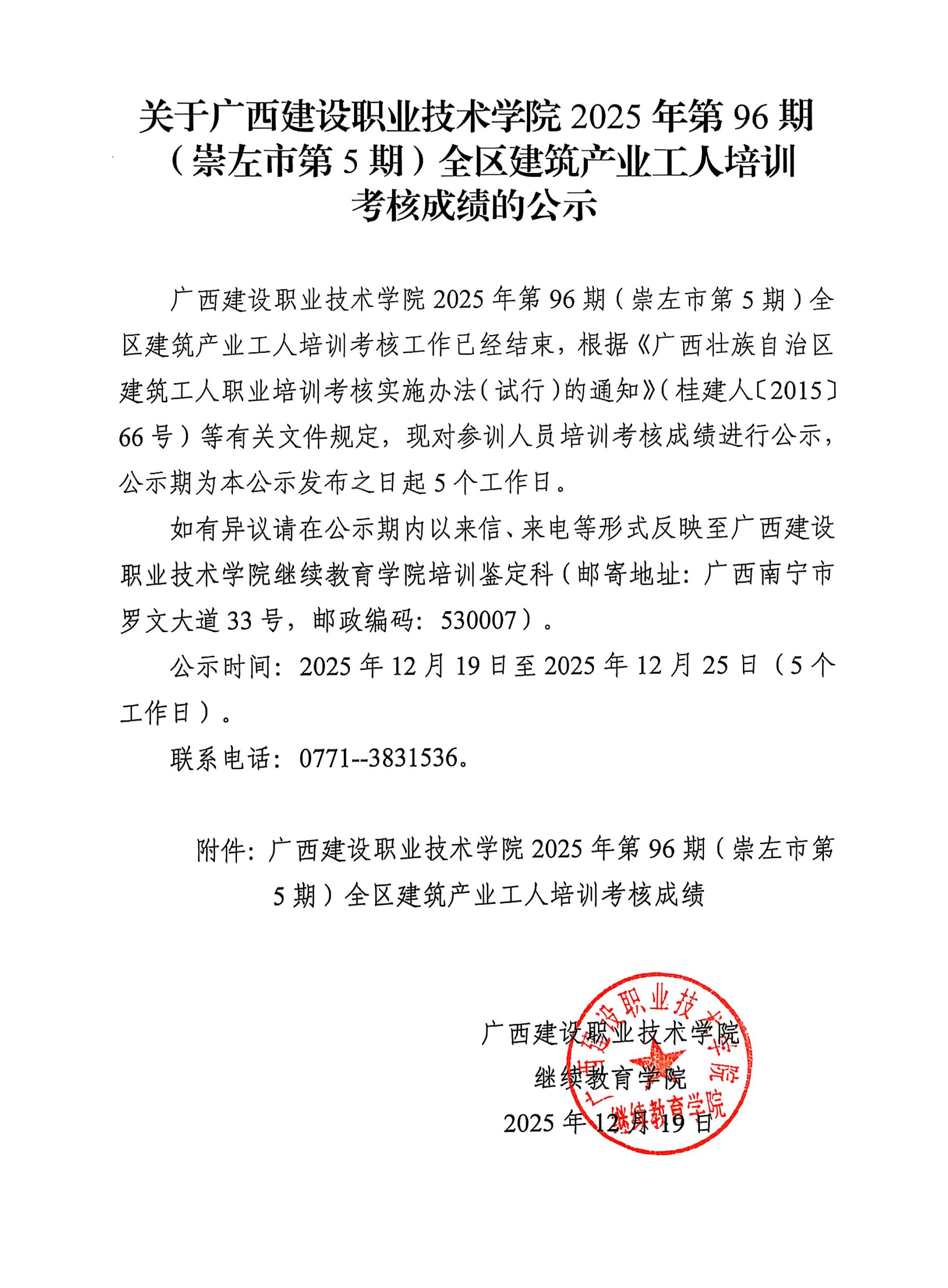 培训信息 当前位置: 首页 >> 培训信息 >> 正文 关于伟德国际1946源于英国2025年第96期(崇左市第5期)全区建筑产业工人培训考核成绩的公示 发布日期:2025-12-23 点击: 附件【关于伟德国际1946源于英国2025年第96期(崇左市第5期)全区建筑产业工人培训考核成绩的公示.pdf】已下载次
