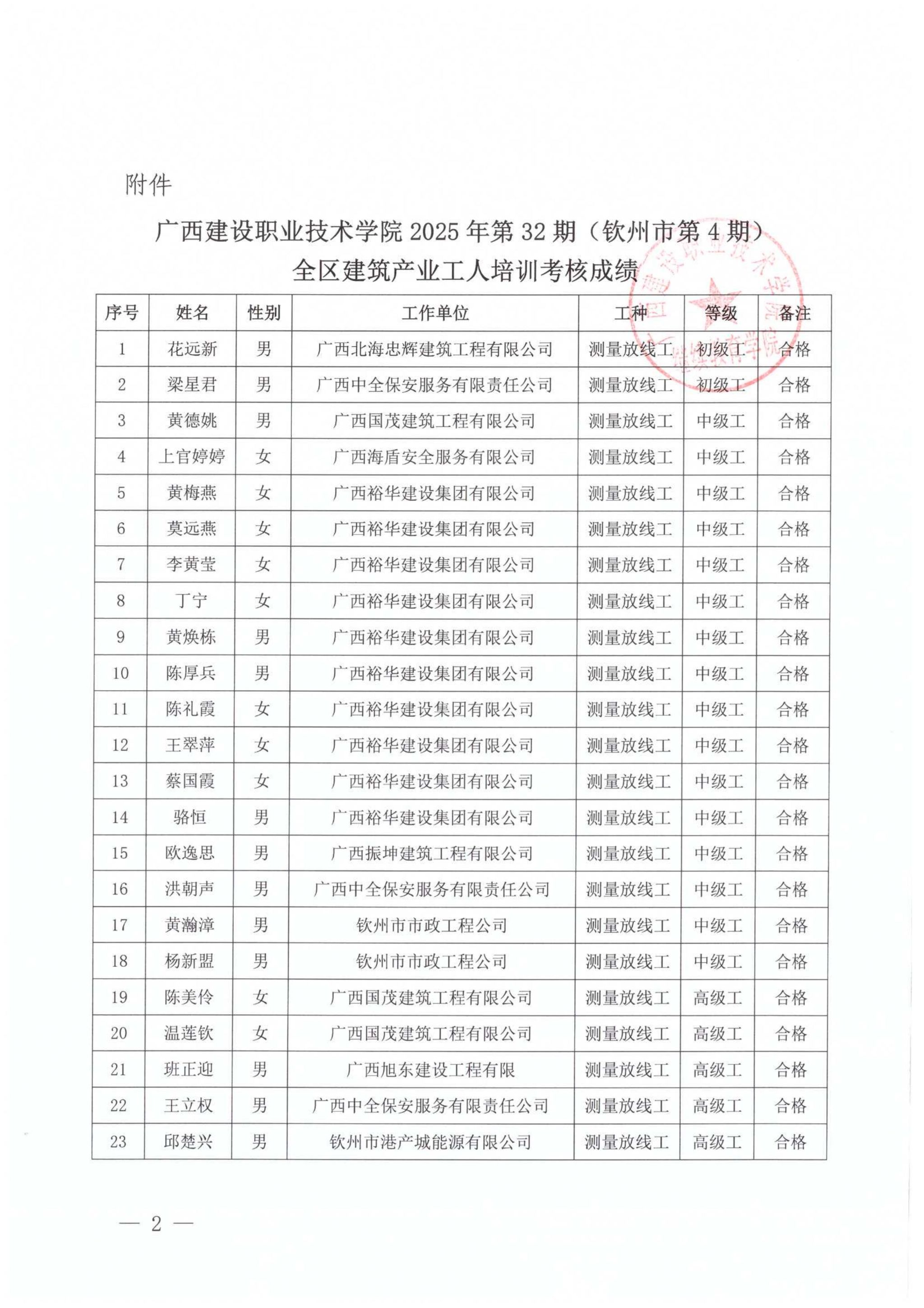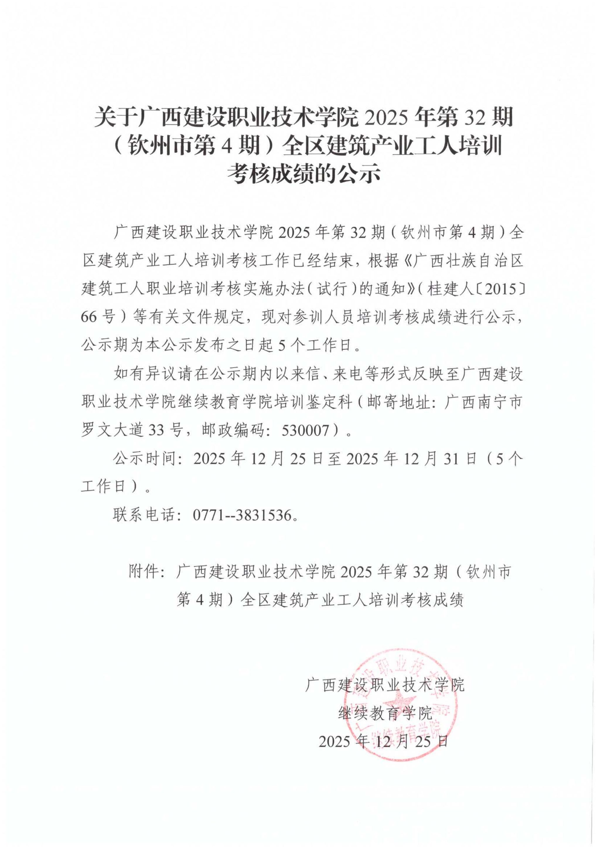 培训信息 当前位置: 首页 >> 培训信息 >> 正文 关于伟德国际1946源于英国2025年第32期(钦州市第4期)全区建筑产业工人培训考核成绩的公示 发布日期:2025-12-25 点击: 附件【关于伟德国际1946源于英国2025年第32期(钦州市第4期)全区建筑产业工人培训考核成绩的公示.pdf】已下载次