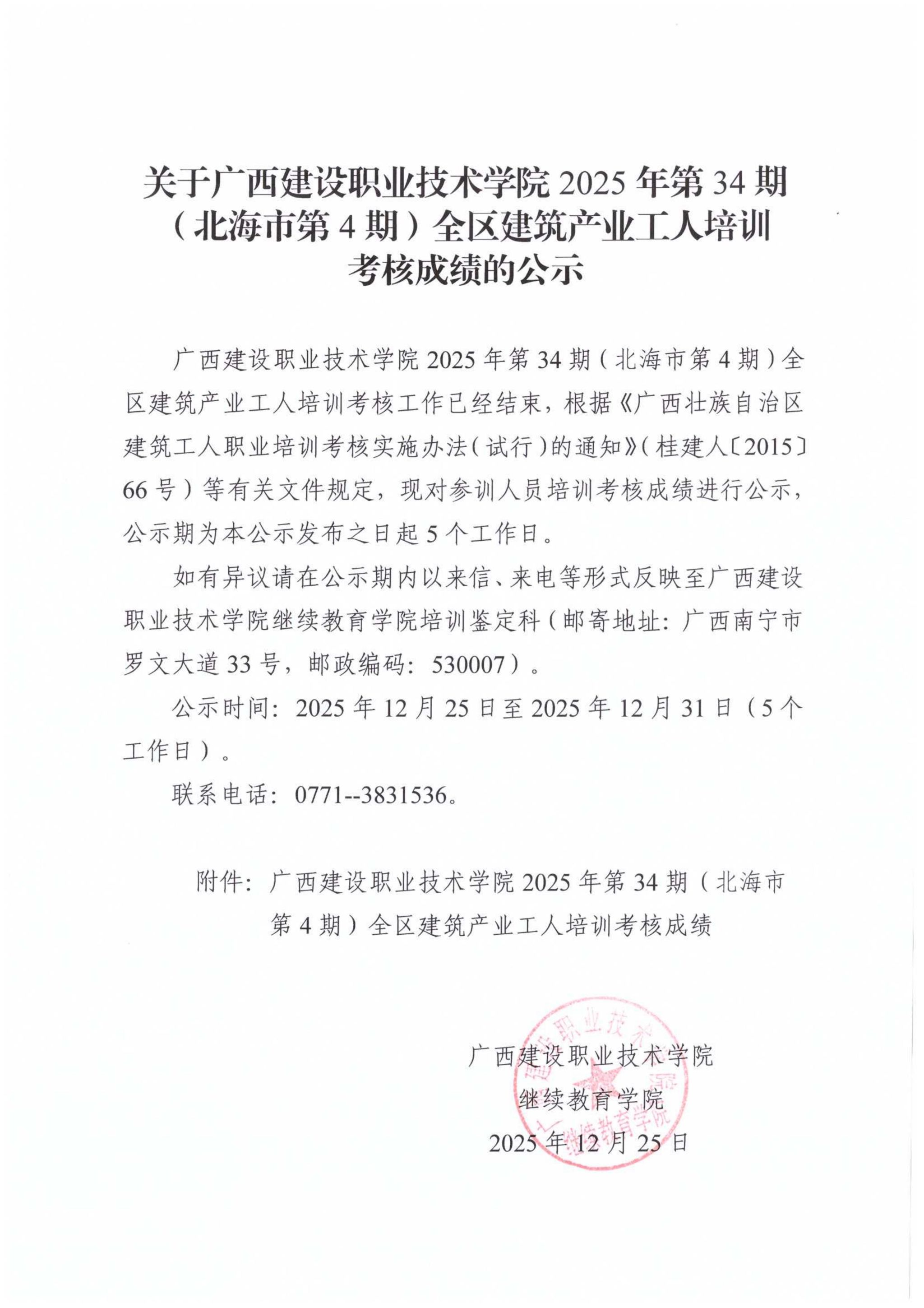 培训信息 当前位置: 首页 >> 培训信息 >> 正文 关于伟德国际1946源于英国2025年第34期(北海市第4期)全区建筑产业工人培训考核成绩的公示 发布日期:2025-12-25 点击: 附件【关于伟德国际1946源于英国2025年第34期(北海市第4期)全区建筑产业工人培训考核成绩的公示.pdf】已下载次