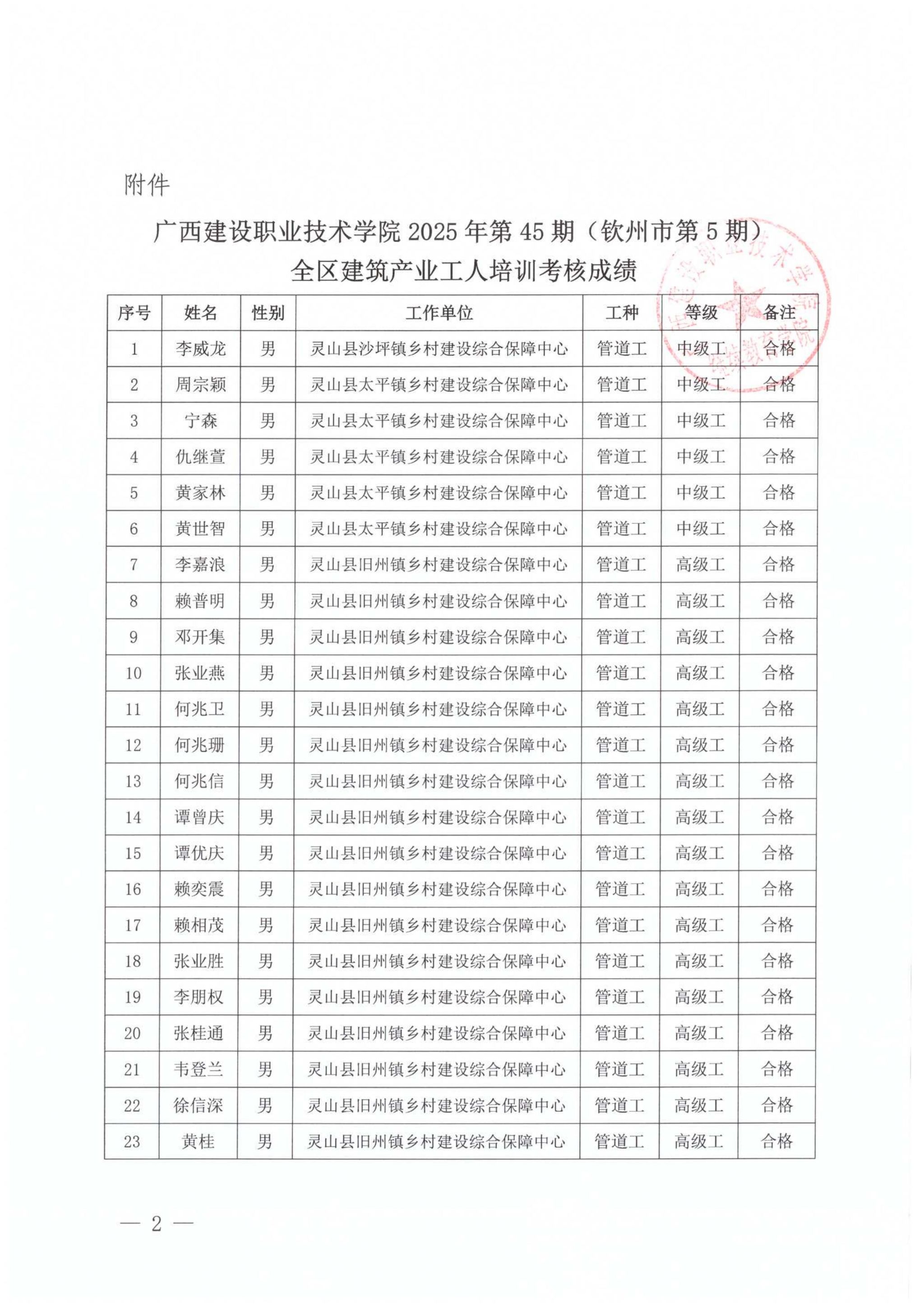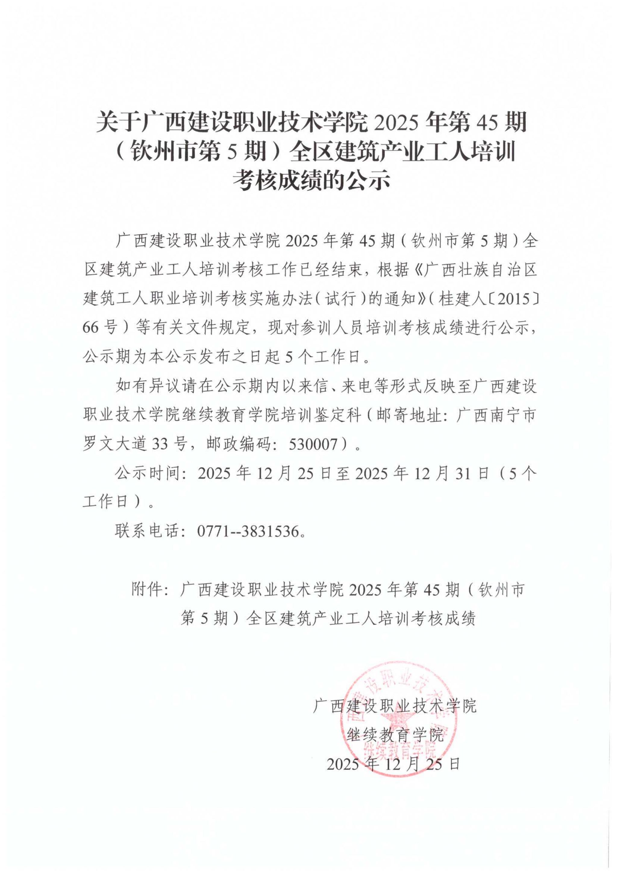 培训信息 当前位置: 首页 >> 培训信息 >> 正文 关于伟德国际1946源于英国2025年第45期(钦州市第5期)全区建筑产业工人培训考核成绩的公示 发布日期:2025-12-25 点击: 附件【关于伟德国际1946源于英国2025年第45期(钦州市第5期)全区建筑产业工人培训考核成绩的公示.pdf】已下载次