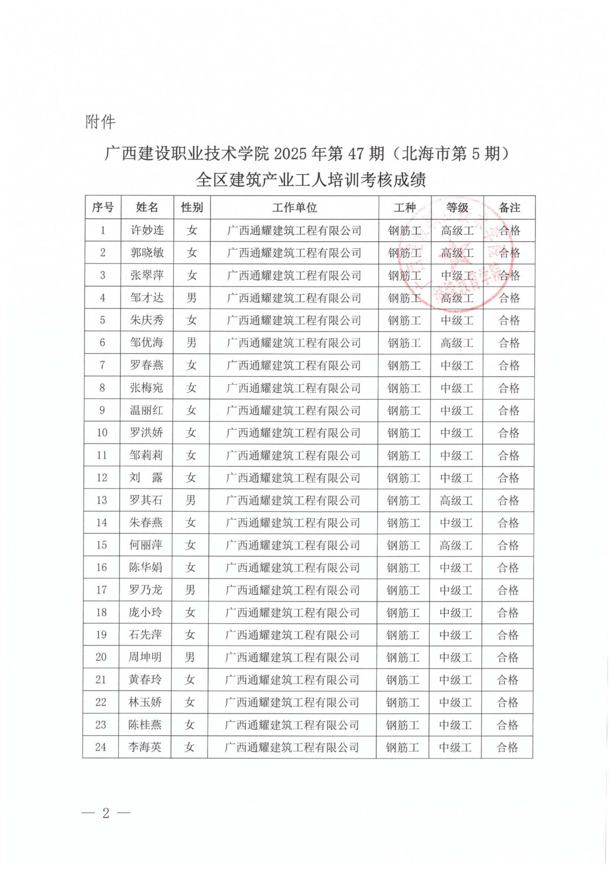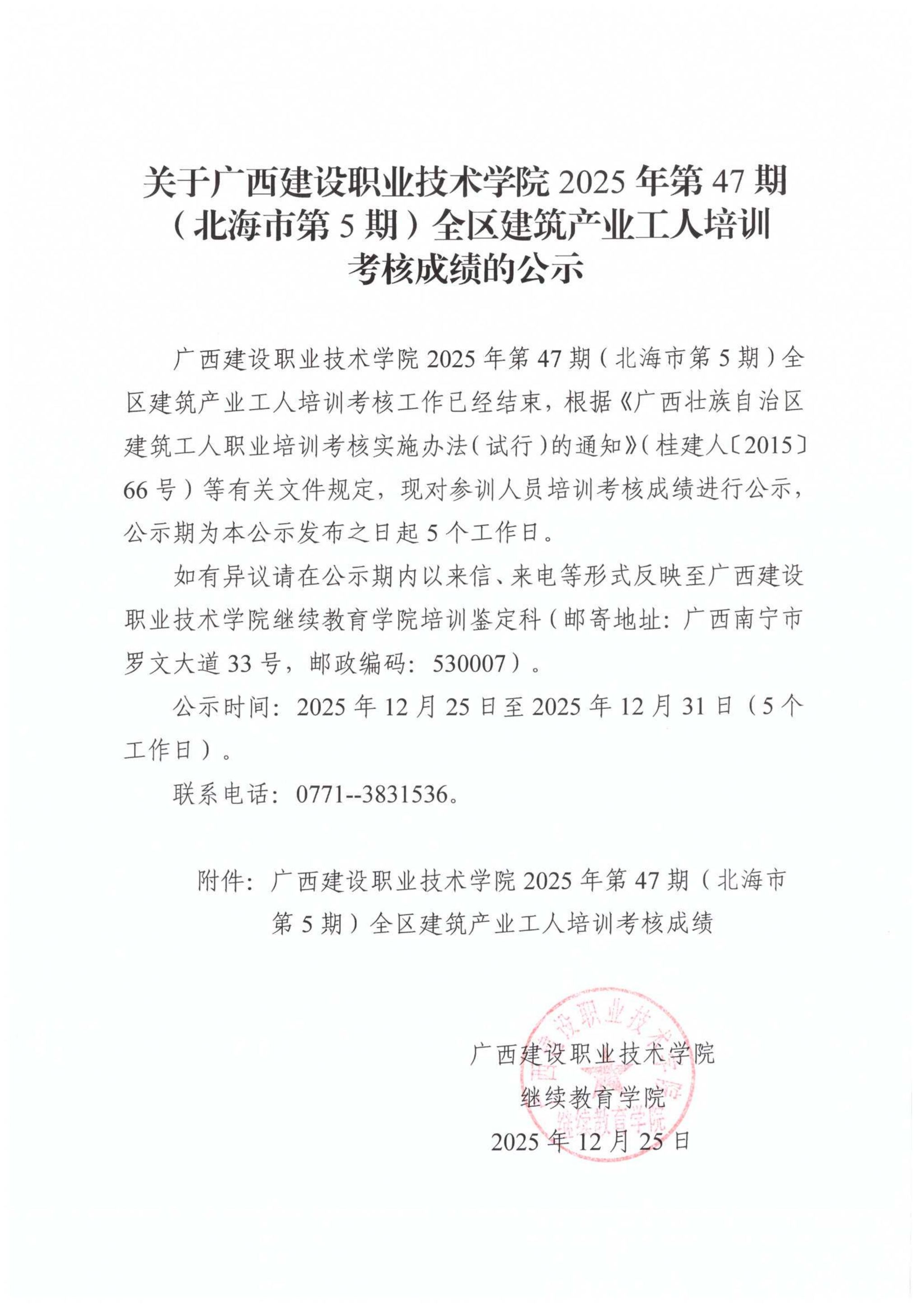 培训信息 当前位置: 首页 >> 培训信息 >> 正文 关于伟德国际1946源于英国2025年第47期(北海市第5期)全区建筑产业工人培训考核成绩的公示 发布日期:2025-12-25 点击: 附件【关于伟德国际1946源于英国2025年第47期(北海市第5期)全区建筑产业工人培训考核成绩的公示.pdf】已下载次