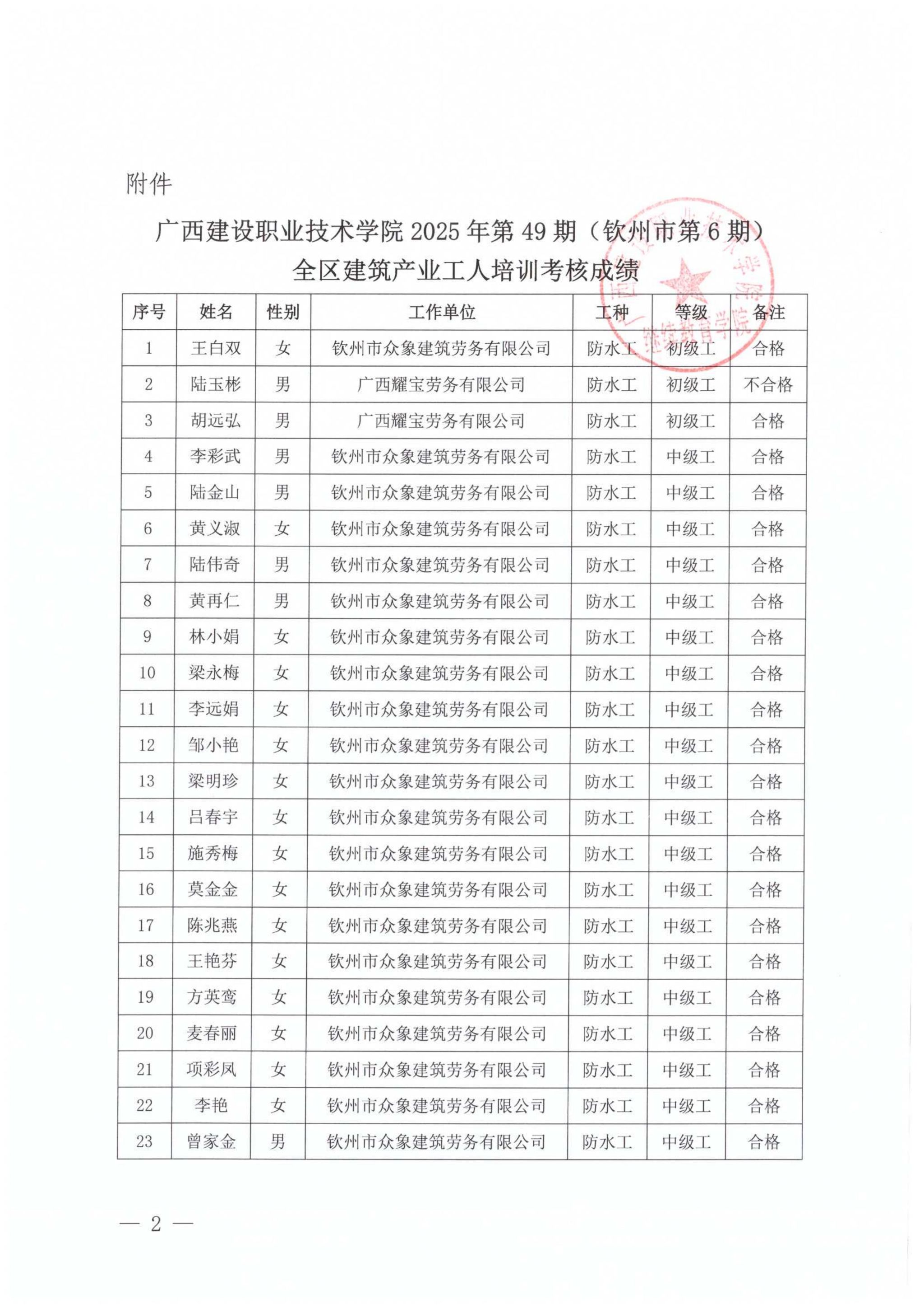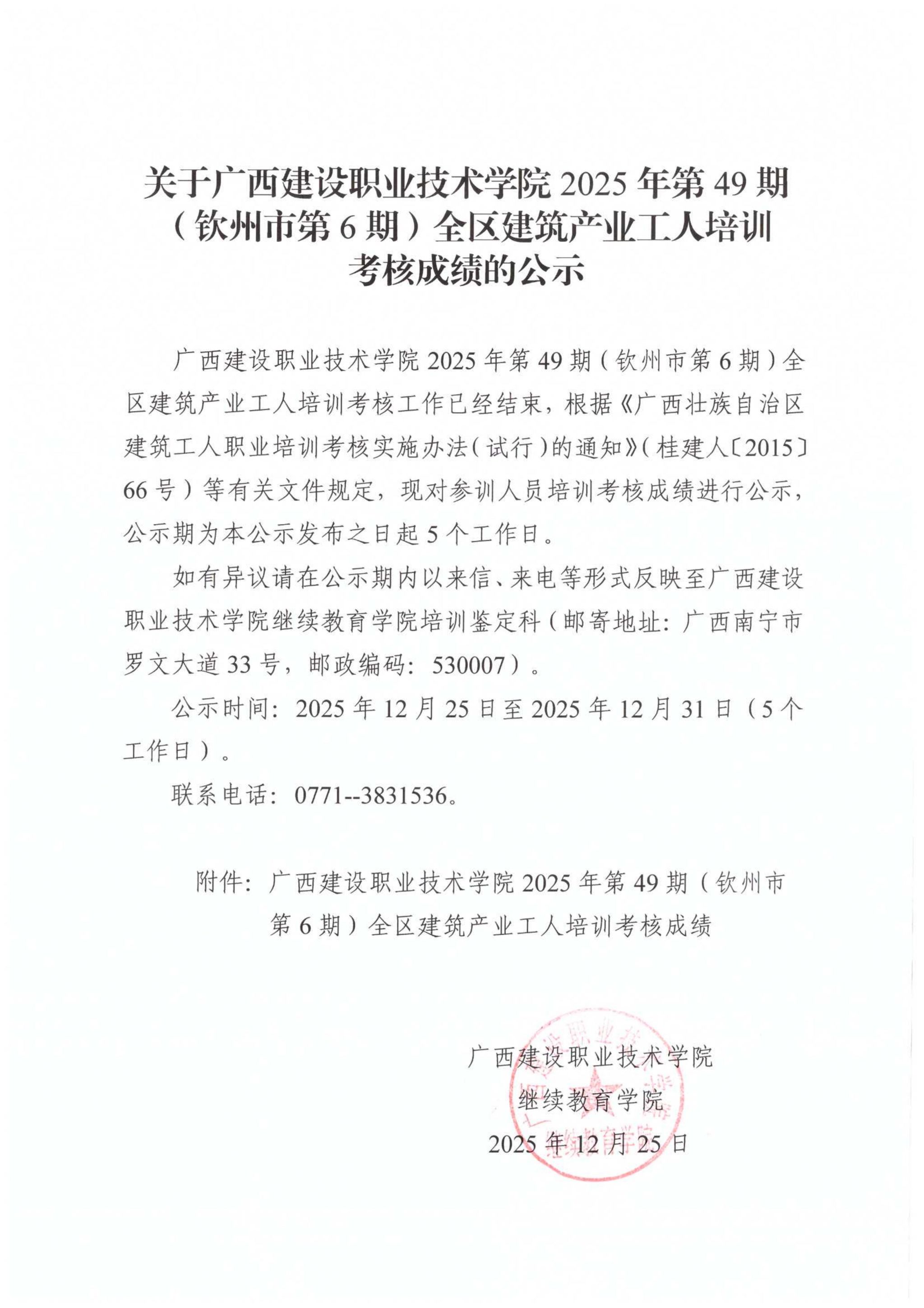 培训信息 当前位置: 首页 >> 培训信息 >> 正文 关于伟德国际1946源于英国2025年第49期(钦州市第6期)全区建筑产业工人培训考核成绩的公示 发布日期:2025-12-25 点击: 附件【关于伟德国际1946源于英国2025年第49期(钦州市第6期)全区建筑产业工人培训考核成绩的公示.pdf】已下载次