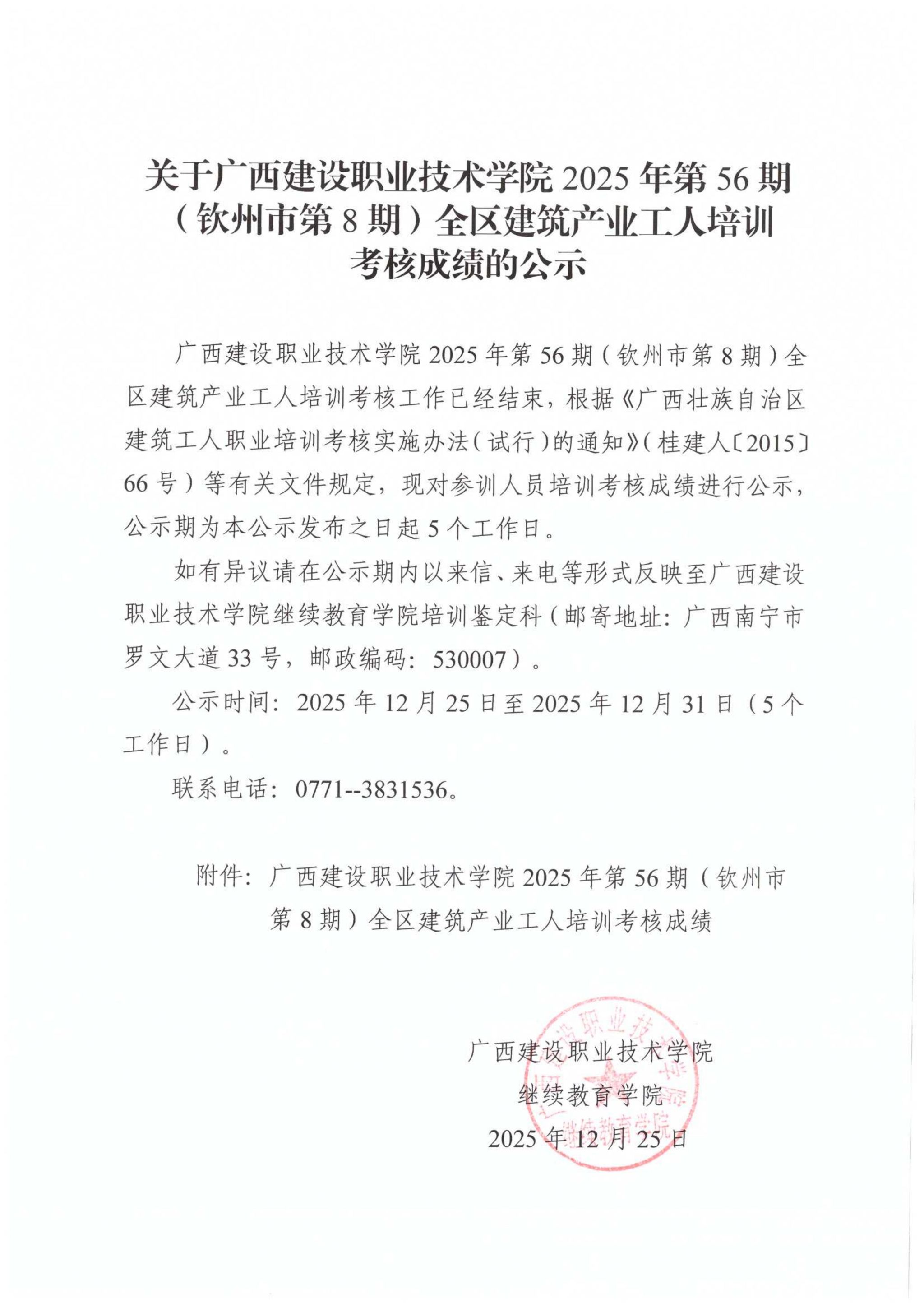 培训信息 当前位置: 首页 >> 培训信息 >> 正文 关于伟德国际1946源于英国2025年第56期(钦州市第8期)全区建筑产业工人培训考核成绩的公示 发布日期:2025-12-25 点击: 附件【关于伟德国际1946源于英国2025年第56期(钦州市第8期)全区建筑产业工人培训考核成绩的公示.pdf】已下载次