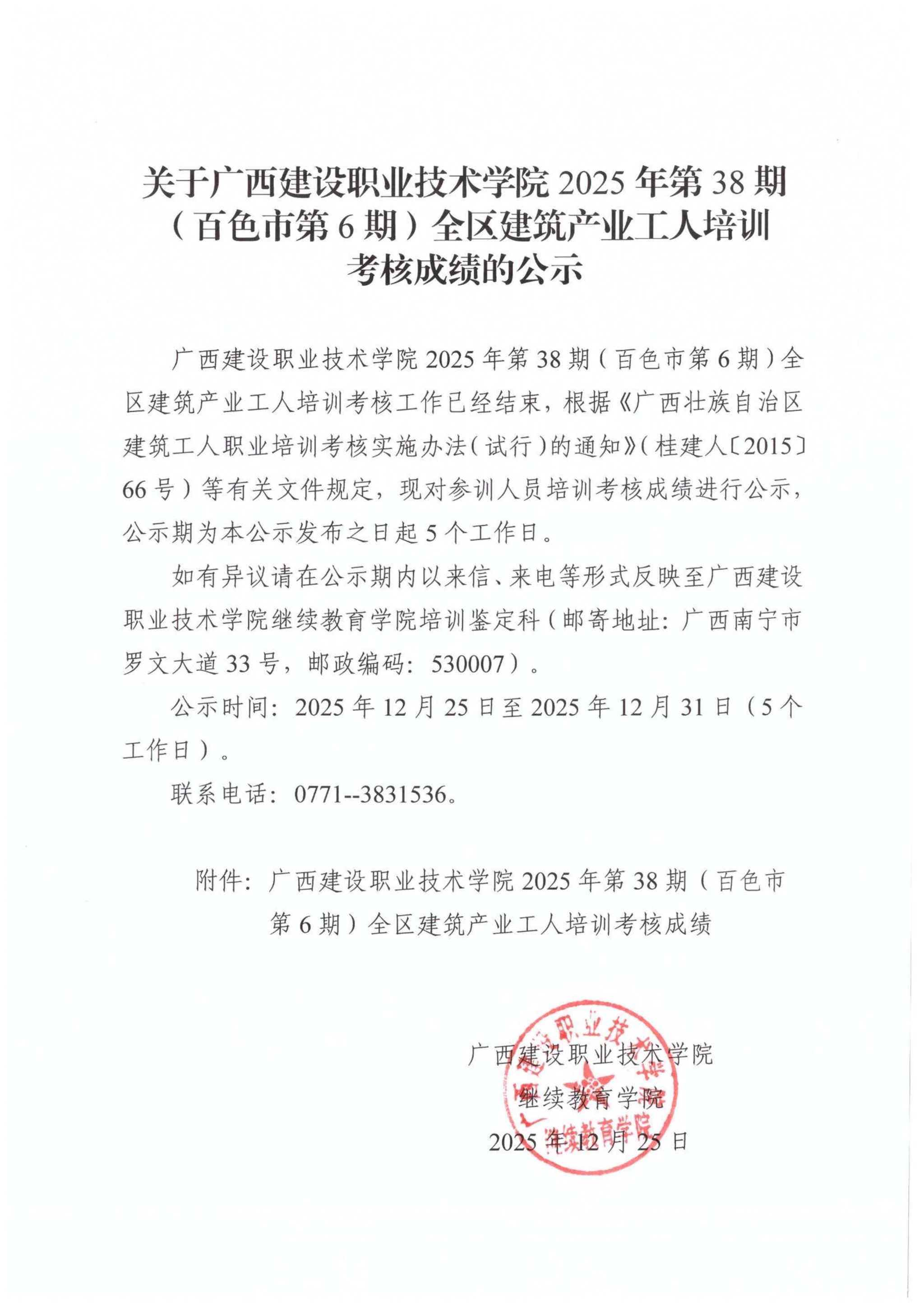 培训信息 当前位置: 首页 >> 培训信息 >> 正文 关于伟德国际1946源于英国2025年第38期(百色市第6期)全区建筑产业工人培训考核成绩的公示 发布日期:2025-12-26 点击: 附件【关于伟德国际1946源于英国2025年第38期(百色市第6期)全区建筑产业工人培训考核成绩的公示.pdf】已下载次