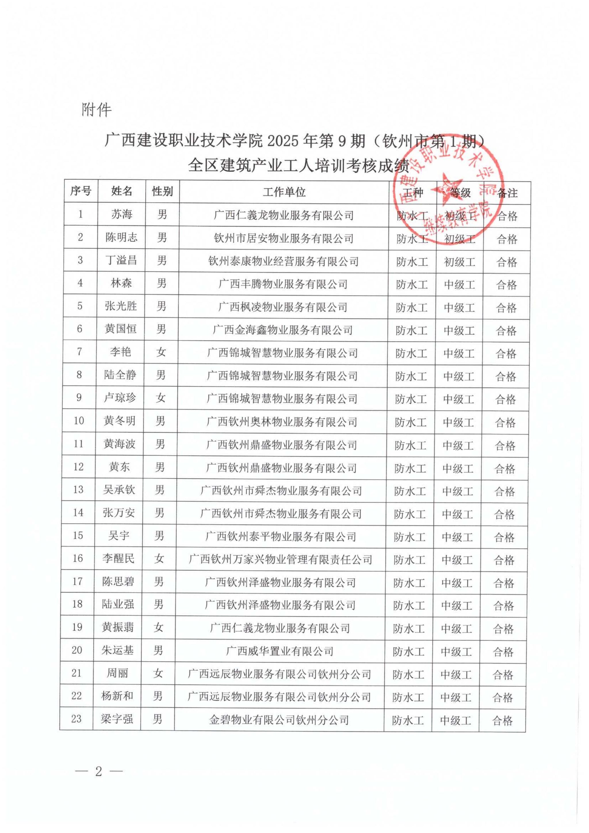 培训信息 当前位置: 首页 >> 培训信息 >> 正文 关于伟德国际1946源于英国2025年第9期(钦州市第1期)全区建筑产业工人培训考核成绩的公示 发布日期:2025-12-26 点击: 附件【关于伟德国际1946源于英国2025年第9期(钦州市第1期)全区建筑产业工人培训考核成绩的公示.pdf】已下载次
