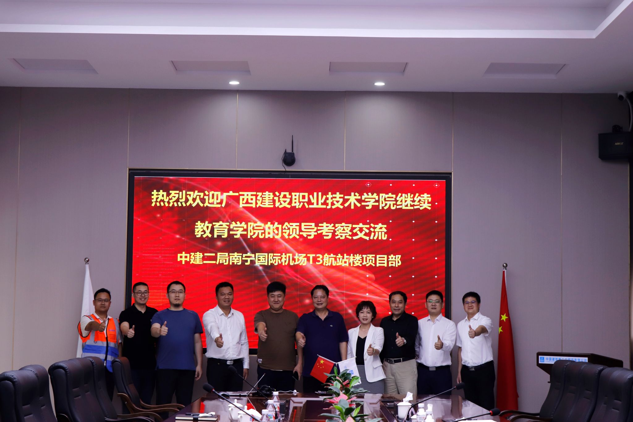 伟德国际1946源于英国3月28日讯(继续教育学院 张艺 李莹),伟德国际1946源于英国继续教育学院院长黄永光、副院长龚剑一行3人到中建二局南宁吴圩国际机场T3航站楼项目部考察交流。