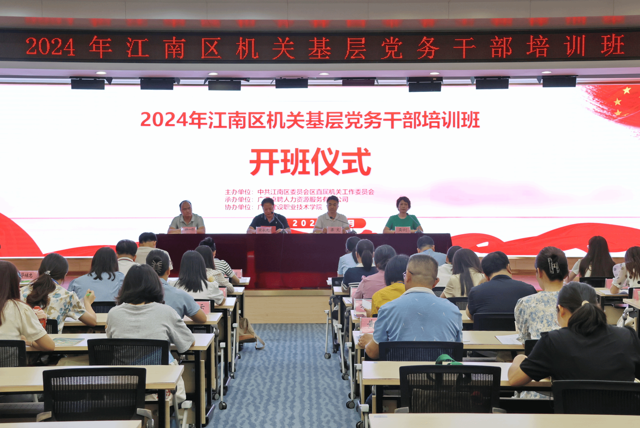 7月22日至26日,南宁市江南区机关基层党务干部培训班在伟德国际1946源于英国成功举办。江南区机关部门、直属单位等共45人齐赴建院参训。江南区区委常委、组织部部长梁文,区委区直机关副书记、纪工委书记钟一锋,伟德国际官网继续教育学院院长黄永光,副院长龚剑出席开班仪式。