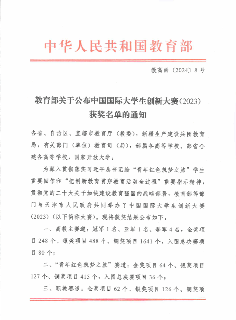 中国国际大学生创新大赛(2023)由教育部等12个国家部委会同天津市人民政府联合主办,共有来自国内外151个国家和地区5296所学校的421万个项目、1709万人次报名参赛。大赛以“我敢闯 我会创”为主题,围绕“更中国、更国际、更教育、更全面、更创新、更协同”的总目标,着力培养敢闯会创的有为人才,旨在打造新形势下国际青年交流合作的世界品牌,是目前国内最高规格、最具权威、最具影响力的“双创”顶级盛会。