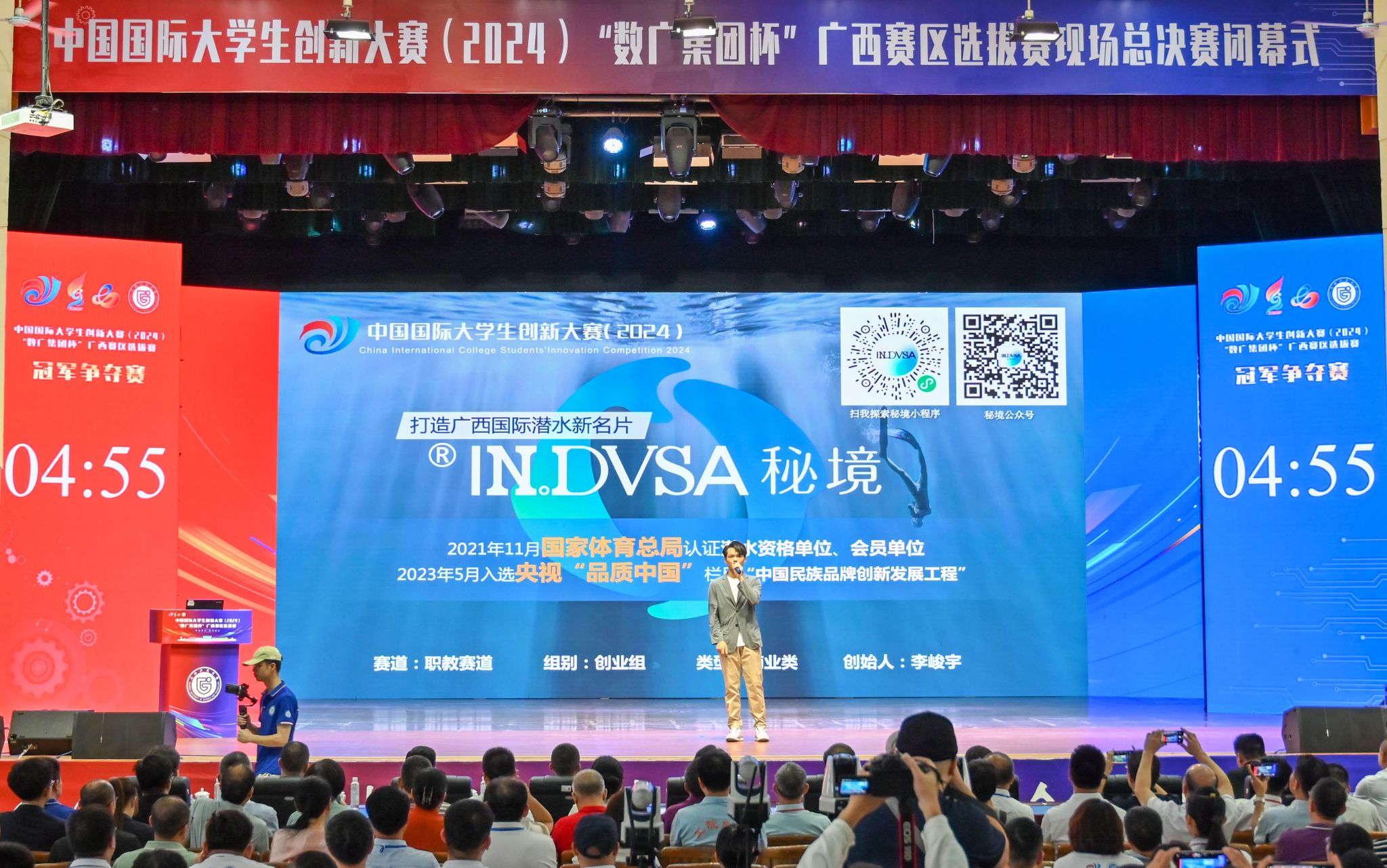 伟德国际官网选拔赛自3月启动以来,学校高度重视,广泛动员,先后组织召开多次工作推进会,举办赛事解读会和项目培训会,加强对参赛学生的全过程全方位指导,各项目师生团队发扬“敢为人先 追求卓越”的建院精神,团结协作,积极备赛。伟德国际官网共有9个项目入围现场总决赛,共有7个项目获得金奖,共有5个项目入围金奖排位赛,数量位居高职高专院校前列。其中,艺术设计学院的《IN.DVSA秘境——打造广西国际潜水新名片》项目荣获职教赛道金奖排位赛第一名,并作为高职高专院校唯一代表与广西大学等5所本科院校角逐冠军。这是广西高职高专院校首次参与冠军争夺赛。