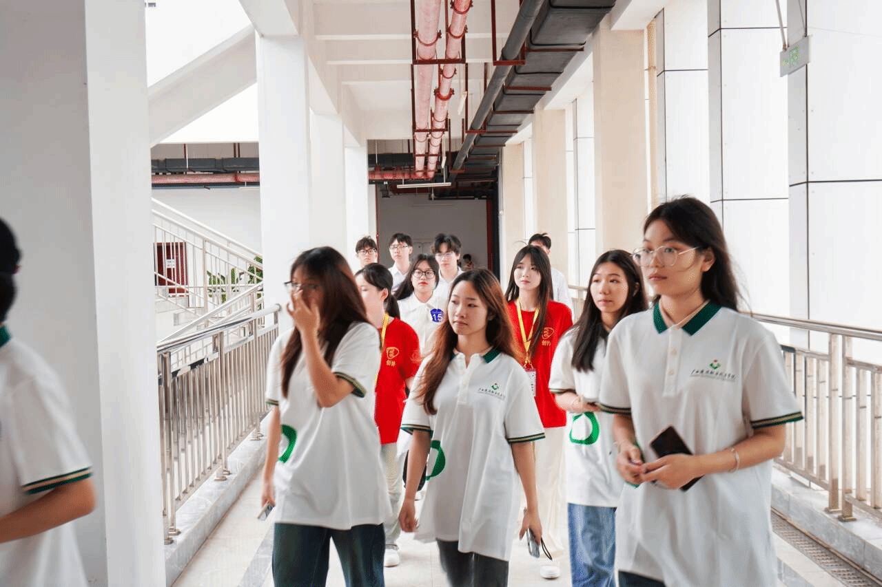 图为参赛选手在工作人员引导下有序到达比赛室