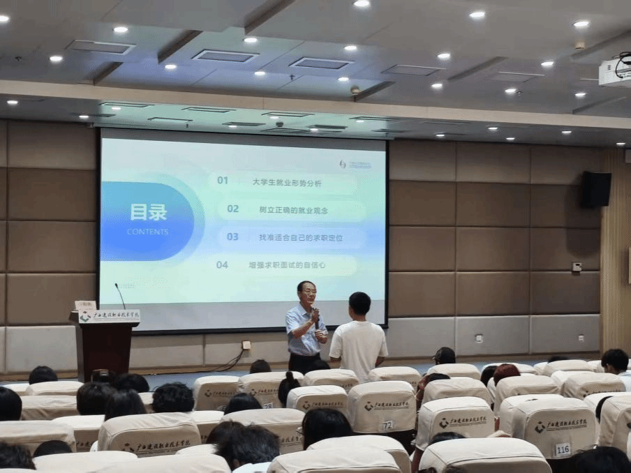 互动环节中,同学们积极与老师互动,热情回应周长明老师提出的问题,现场气氛热烈有趣。同学们纷纷表示,通过此次的讲座对大学生就业有了更新的认识,对未来职业发展有了更清晰的认识与定位。