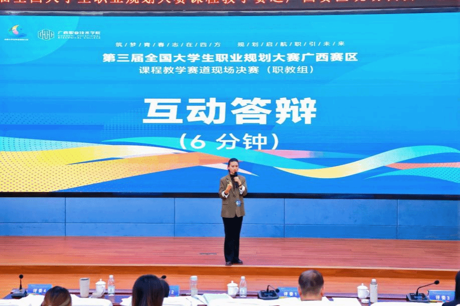 本次大赛课程教学赛道省赛选拔赛分为复赛网络评审(占比60%)与现场总决赛(占比40%),共设金奖6项、银奖10项、铜奖15项。经过复赛选拔,全区20所高职院校的30名教师晋级决赛。在现场决赛中,选手围绕“课程建设汇报、教学能力展示、互动答辩”三大环节展开角逐。伟德国际官网两位教师凭借扎实的课程建设基础和出色的现场发挥,最终脱颖而出,分获金、银奖项。