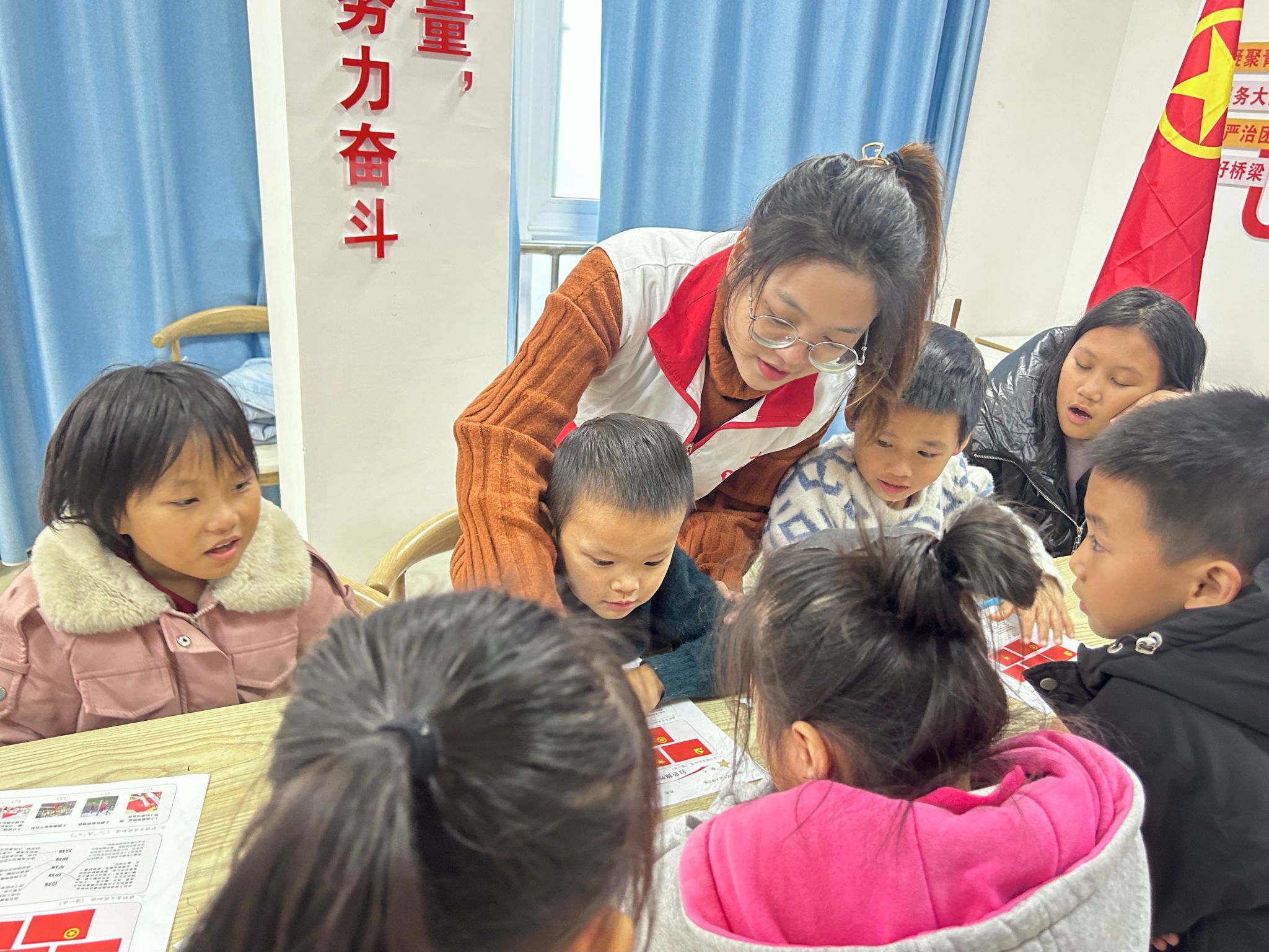图为唐梦阳到社区开展“四点半课堂”公益活动