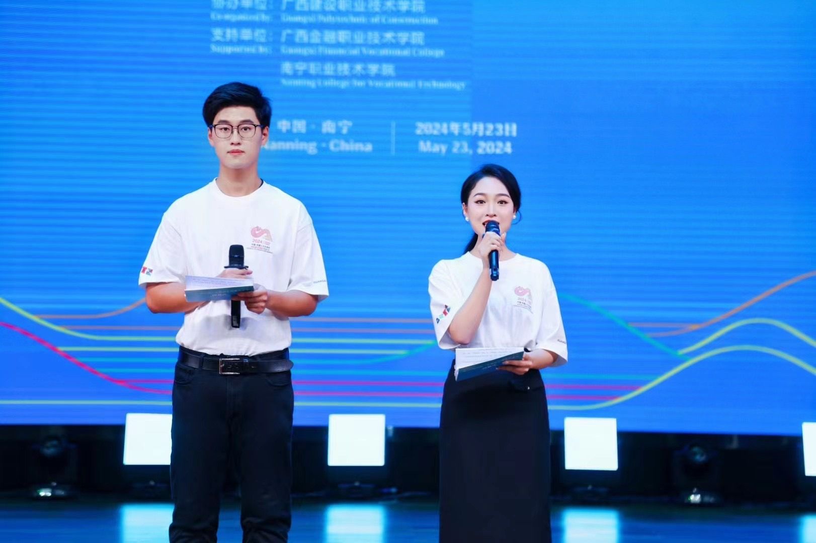 图为陈燕鑫担任第10届中国东盟青年精英交流节闭幕式主持人