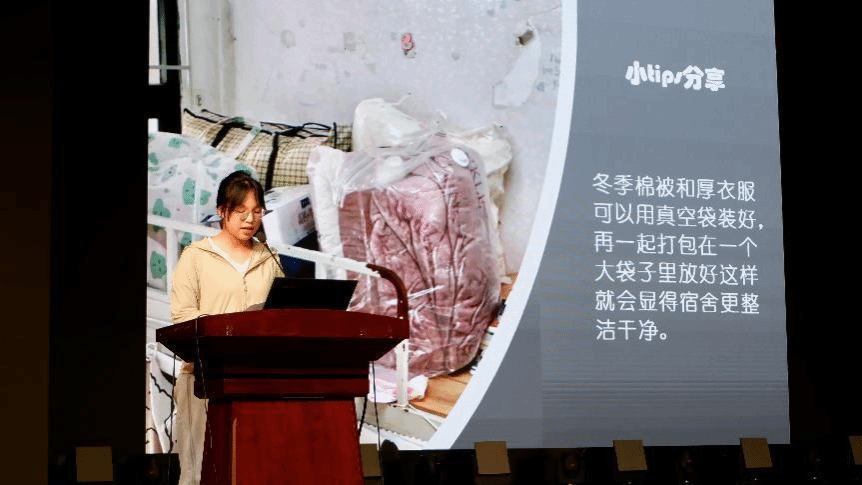 会上,蒋诗南老师以2023-2024第一学期文明宿舍评比情况为切人点,强调宿舍管理中常见的安全隐患及近期警示案例,希望同学们引以为戒,树立正确的消费观,增强风险防范意识,营造出良好的学习和生活环境。