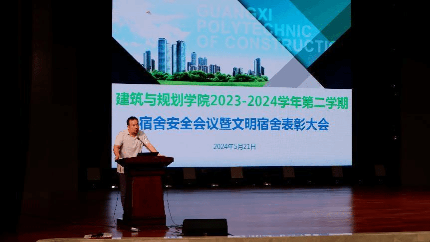 为进一步加强学生宿舍管理,积极营造规范整洁、文明和谐的生活学习环境,增强学生安全教育和意识形态建设,我院于5月21日在礼堂召开2023-2024学年第二学期宿舍安全会议暨文明宿舍表彰大会。本次会议由蒋诗南老师主持,学院副院长刘继骁、在校生辅导员及全体在校生参加会议。