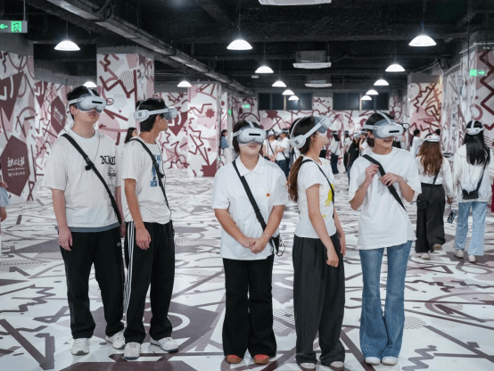 抵达目的地后工作人员首先围绕活动主题与党史背景进行讲解,系统回顾中国共产党光辉历程,为后续沉浸式体验奠定思想基础。随后,师生参与了AR沉浸式体验。依托先进技术,师生们仿佛穿梭于历史长河,身临其境地感受从党的诞生、艰苦卓绝的革命斗争到新时代砥砺奋进的伟大历程。沉浸式互动体验使教师及青年学子深切感悟红色精神,使命感油然而生。