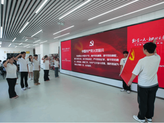 体验环节结束后,建筑与规划学院的团员、预备党员及入党积极分子整齐列队。全体团员面向团旗肃立,重温入团誓词,以铿锵的誓言庄严承诺坚守理想、勇于担当;党员则面向党旗,高举右拳,重温入党誓词,表达对党的无限忠诚和为党的事业奋斗终身的坚定决心。这庄严的宣誓仪式,深刻展现了学院青年学子传承红色基因、矢志践行初心使命的坚定信念。