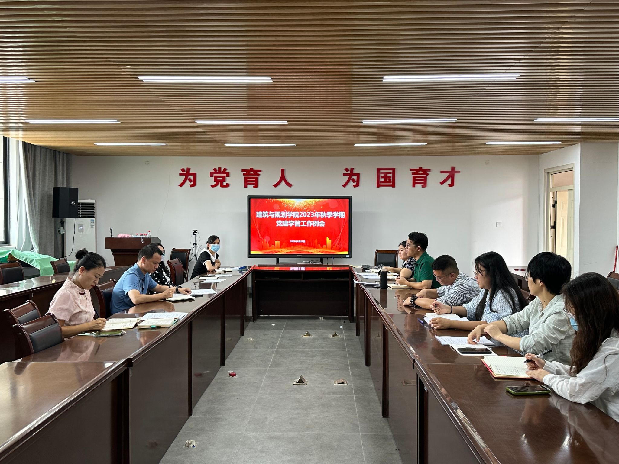 2023年8月28日9时,我院在6教1205开展2023年秋季学期第一周党建学管工作例会,学院党总支副书记许愿(主持工作)、总支委员以及全体学管老师参加会议。