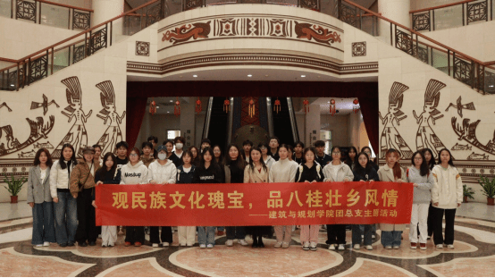 3月25日讯(建筑与规划学院 文/何佳津 刘云 图/青昱希)为铸牢师生中华民族共同体意识,建筑与规划学院团总支组织教师代表以及第3期“青马工程”基础班全体成员,赴广西民族博物馆开展“行走的思政课”实践教学活动,通过沉浸式观展与互动体验,探寻八桂大地多元一体的民族文化基因。