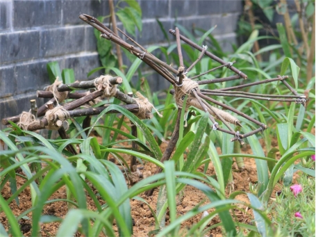 实践团应自成村村委的建设需求,将村部办公楼门前两块亟待美化的空地作为绿化微改实践重点。实践团成员结合当地自然条件,选用耐旱易成活植物进行景观搭配,并巧妙利用山上废弃的木头、竹子、枯树枝等资源,“变废为宝”制作园林小品进行点缀,通过绿化微改将设计蓝图转化为“推窗见绿”的生动现实。这些“小而美”的绿化微改实践,既能直观地提升村容村貌,让村庄“靓起来”,又能满足当地村民的审美需求以及对绿色美好生活的热切向往。